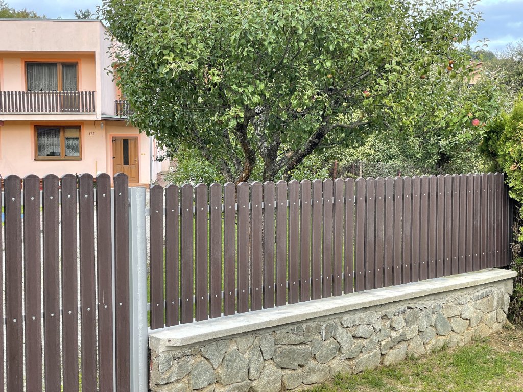 Doska má na jednom konci oblúčik. Profil dosky je veľmi zaujímavý, a preto tento profil patrí medzi obľúbené a cenovo dostupné profily na ploty, balkóny, posuvné brány. Ukotviť dosku môžeme napríklad aj spojovacím materiálom - šrubou s pologuľatou hlavou a ukončenou maticou s priemerom 5 alebo 6 mm. Pri vŕtaní je lepšie použiť trochu širší vrták ako je šruba. Samozrejme výber spojovacieho materiálu je podľa vkusu zákazníka a preto sa dajú použiť aj takzvané texy, alebo šruby priamo do železa, aj dve vedľa seba. Práca s týmto materiálom je obdobná ako pri dreve, na rezanie používame ten istý rezný materiál napr. priemer 250 mm, kotúč s 40- 60 rezných telies. Materiál je pevný, stálofarebný, bezúdržbový a odolný voči poveternostným vplyvom.