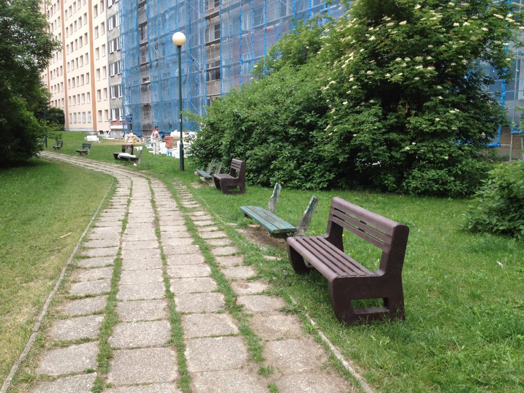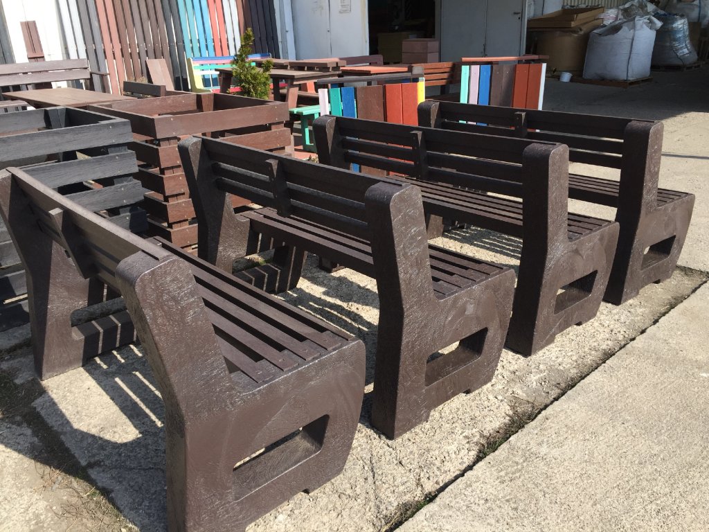 Lavička typu L-bench je veľmi obľúbená vďaka farebný variáciám. Masívna 95 kg plne plastová lavička je vhodná do exteriérov miest a obcí, parkov firiem a organizácii, viac ako 1000 kusov predaných lavičiek. Samozrejme najbežnejšou farbou je hnedá v tmavej alebo svetlej kombinácii. Výrobok ako celok je odolný voči mechanickým poškodeniam a vandalom. Je možné ho kotviť priamo do spevnenej plochy pomocou L-ka alebo aj do nespevnenej zeminy pomocou podstavcov, ktoré sa dajú zakopať do zeme. Lavičky slúžia aj na letisku Košice už viac ako 20 rokov.