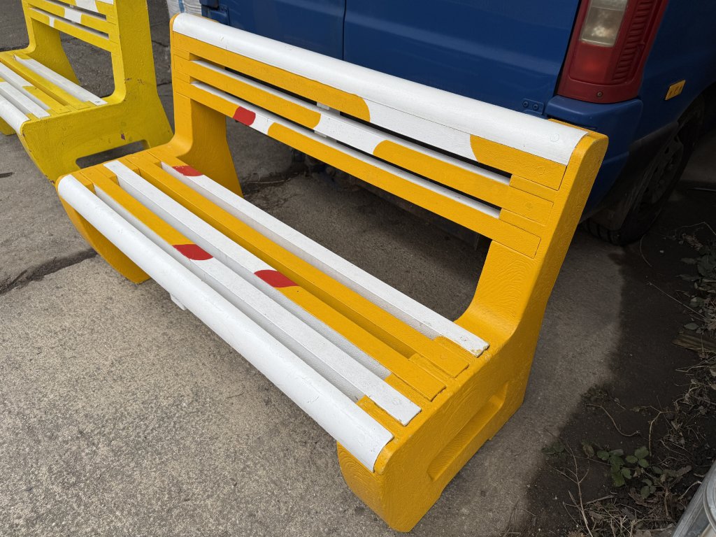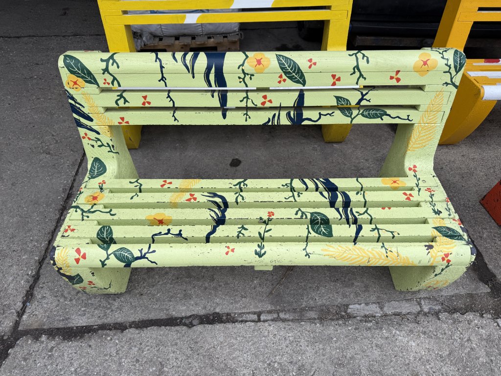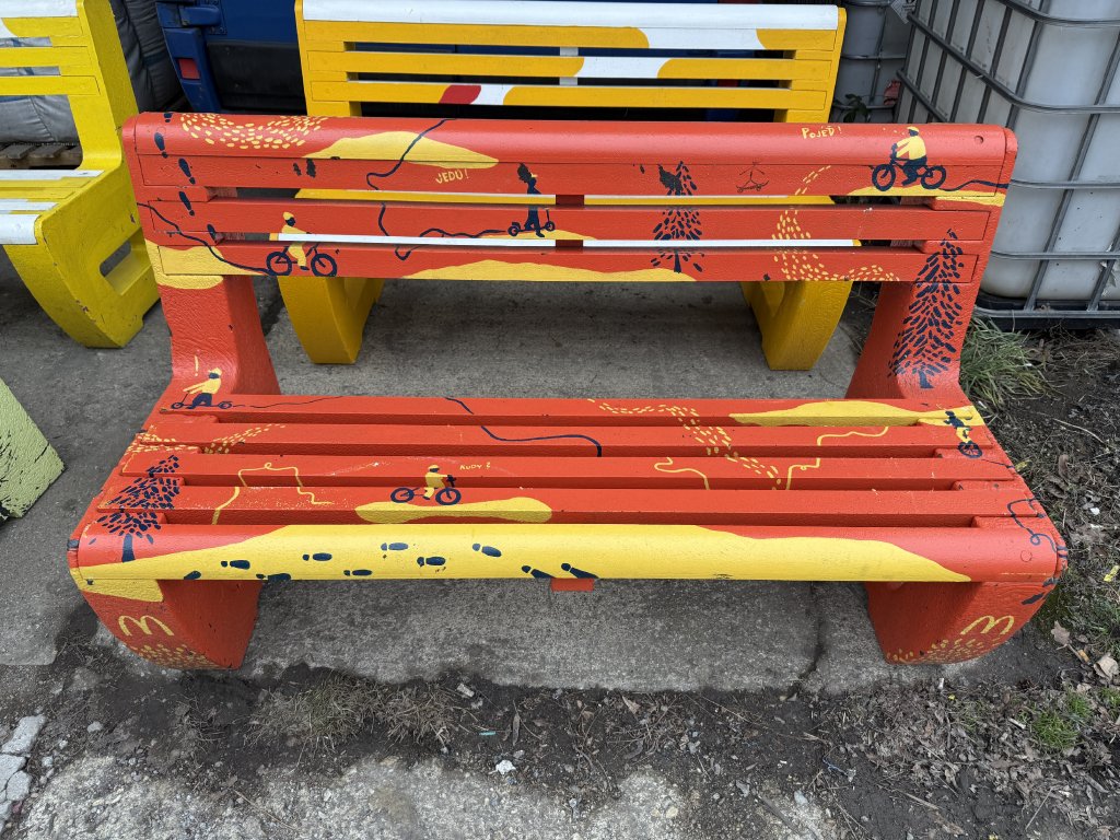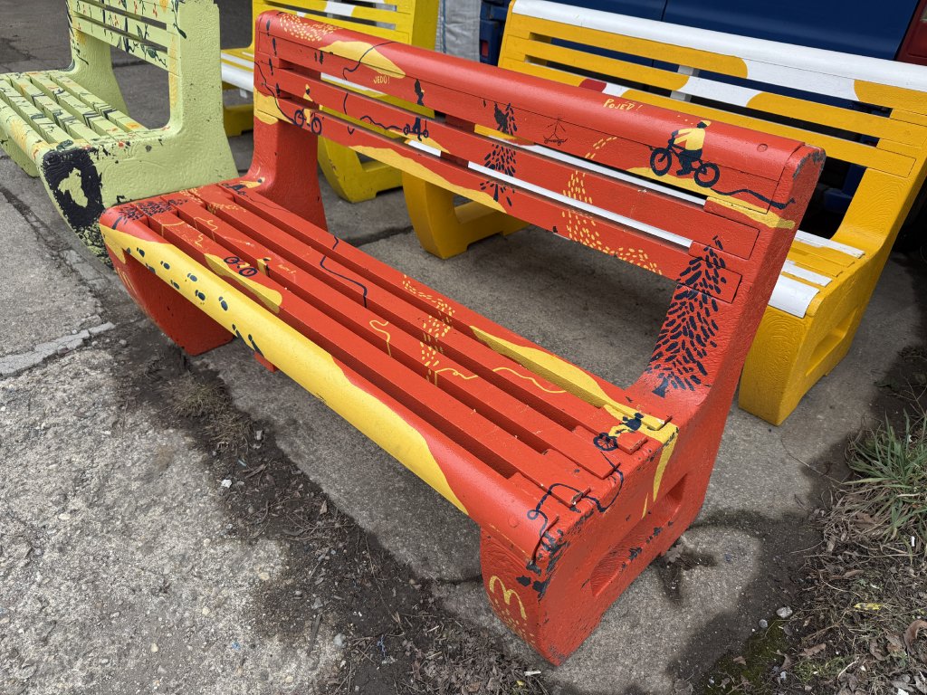 Táto originálna lavička bola vyrobená na mieru pre McDonald's Slovensko ako súčasť iniciatívy zameranej na zvyšovanie povedomia o možnostiach recyklácie. Materiálom pre jej výrobu boli recyklované plastové príbory a riady, ktoré dostali druhú šancu v podobe funkčného dizajnového prvku.