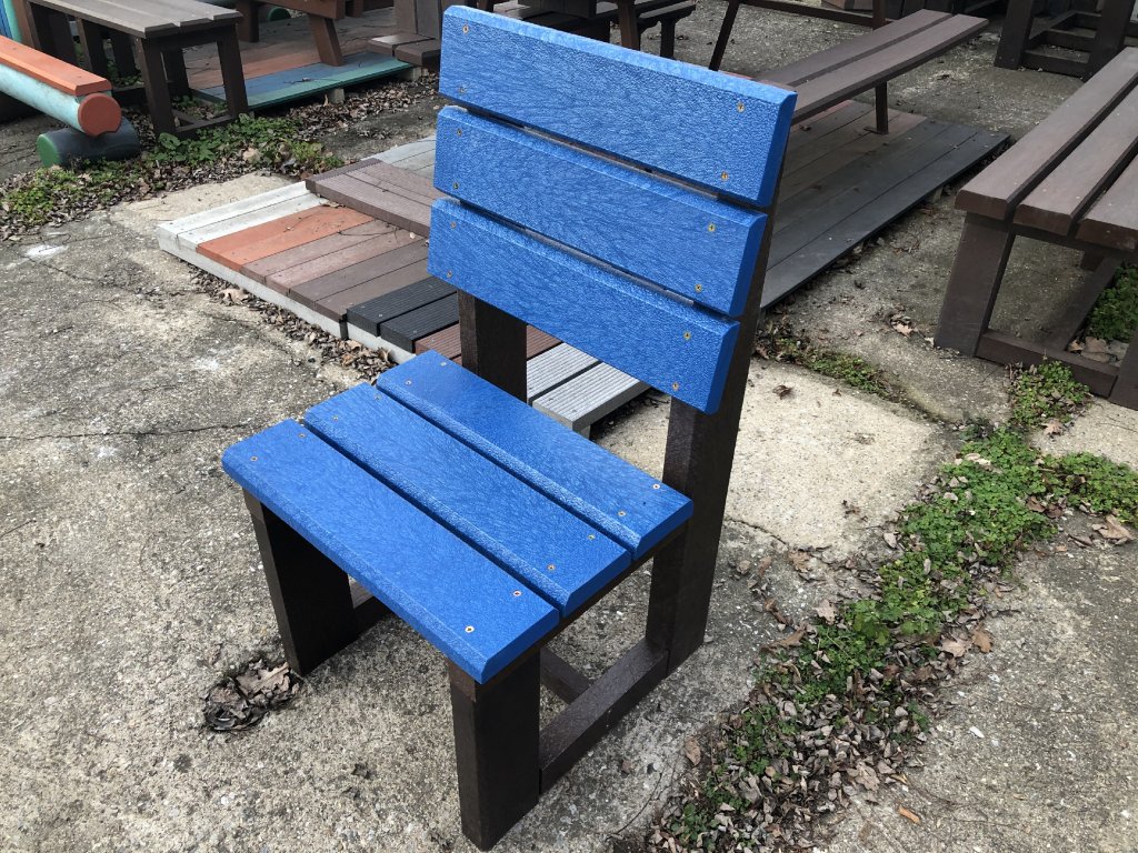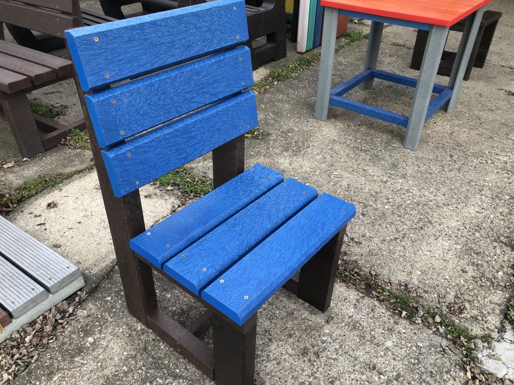 Malá, robustná stolička na sedenie. Odolná voči poveternostným vplyvom. Tri 3,5 m hrubé dosky na sedení a tri 3,5 cm hrubé dosky na opierke, rôzne farebné prevedenia. Stolička je vyrobená z plného, stálofarebného, bezúdržbového a počasiu odolného materiálu.