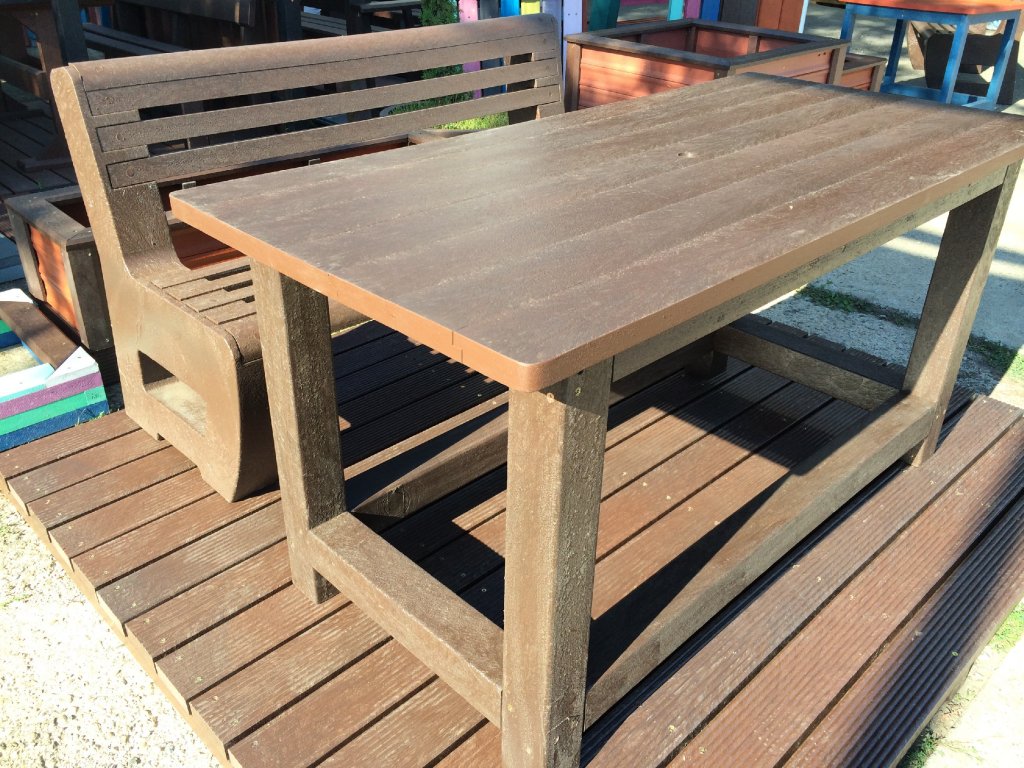 › Záhradný nábytok 1 stôl a 2 lavičky › 02 h. Masívny stôl z hranolov