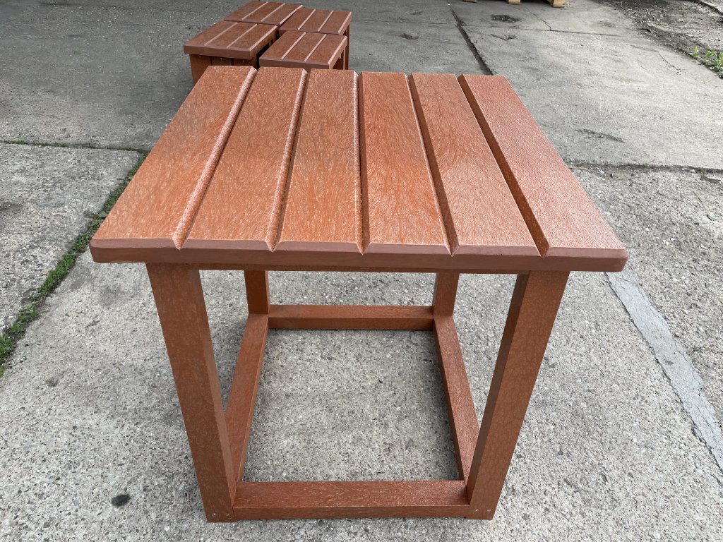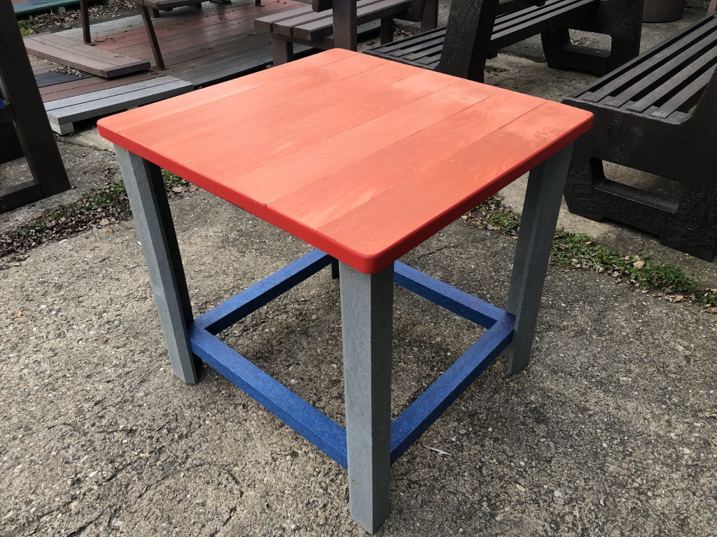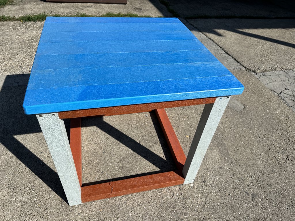 Detský stôl z tvrdého, bezúdržbového materiálu, odolného voči poveternostným vplyvom. Možné akékoľvek farebné vyhotovenie podľa požiadaviek zákazníka.