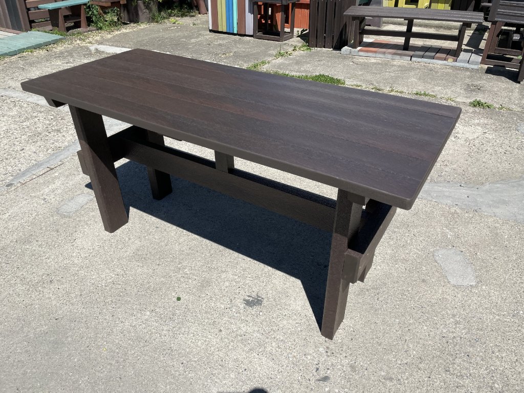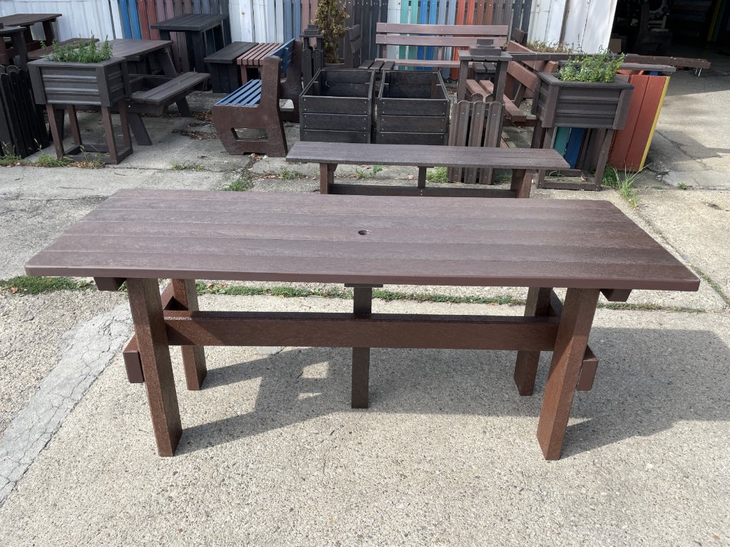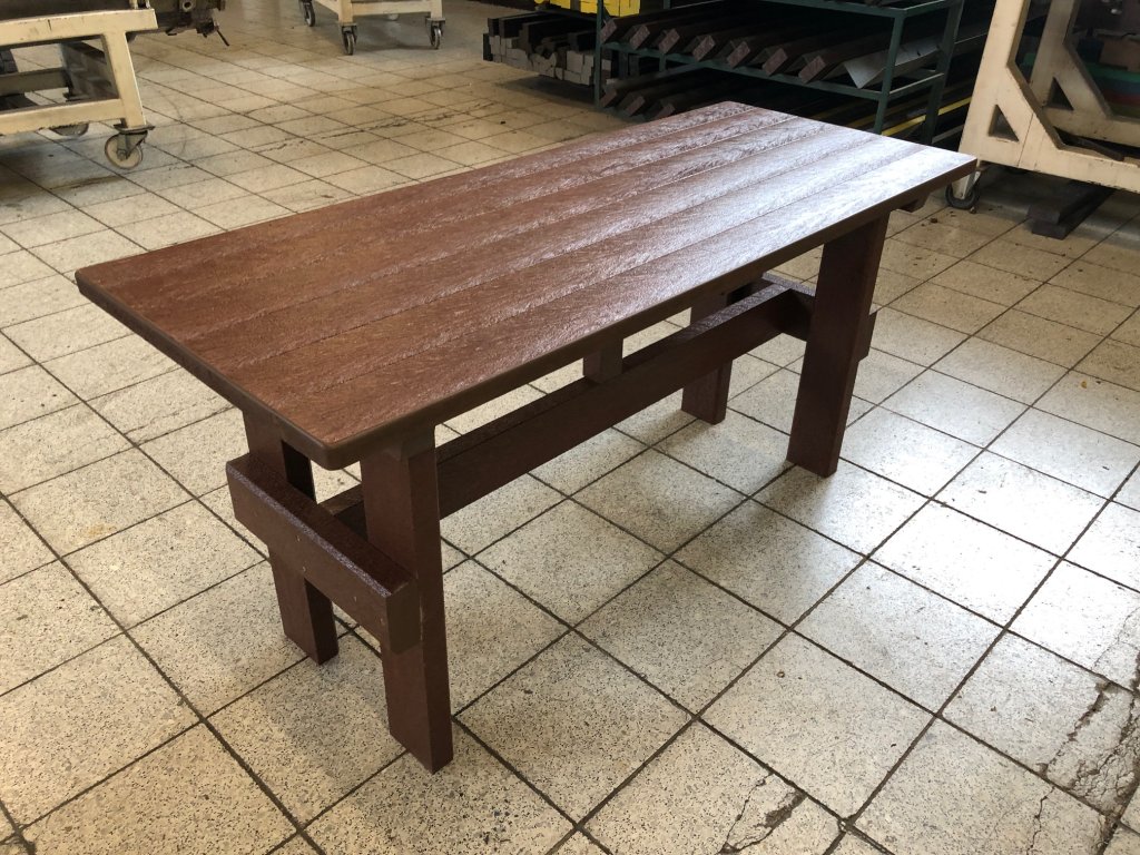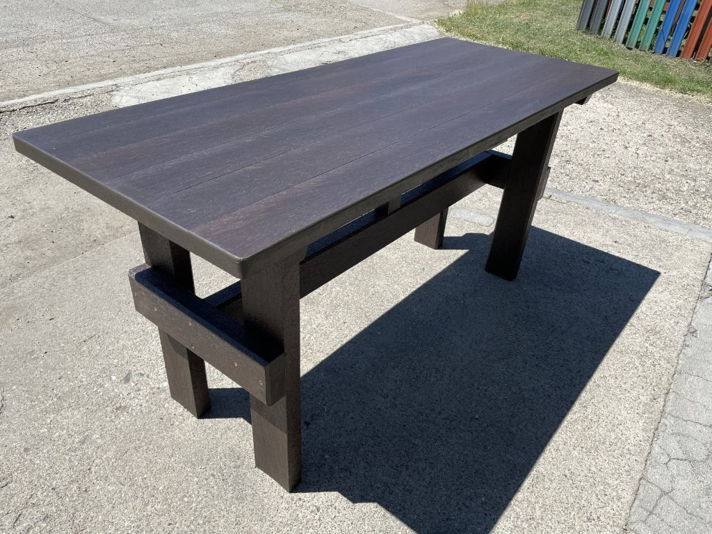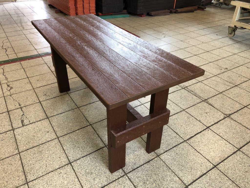 Masívny stôl vyrobený z recyklovaných materiálov, vhodný do každej záhrady, parku, detského ihriska. Má masívne nohy. Je vyrobený z plného, stálofarebného a vodeodolného materiálu. Za príplatok ho vieme vyrobiť v rôznych dĺžkach a rôznych farbách.