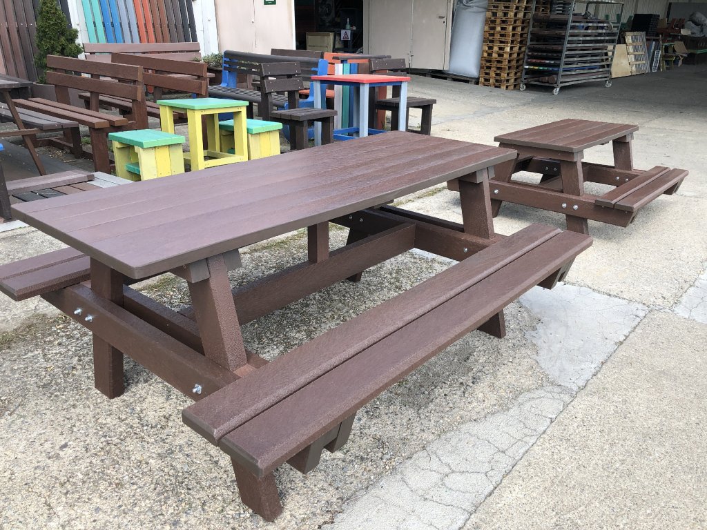 Piknik, alebo pivný stôl určený do záhrad barov, reštaurácii a hotelov je vhodným doplnkom na celoročnú prevádzku. Prevažne ho vyrábame v dĺžkach do 160 cm v hnedej farbe, alebo "na mieru" v rôznych farebných kombináciách, prípadne z dreva.