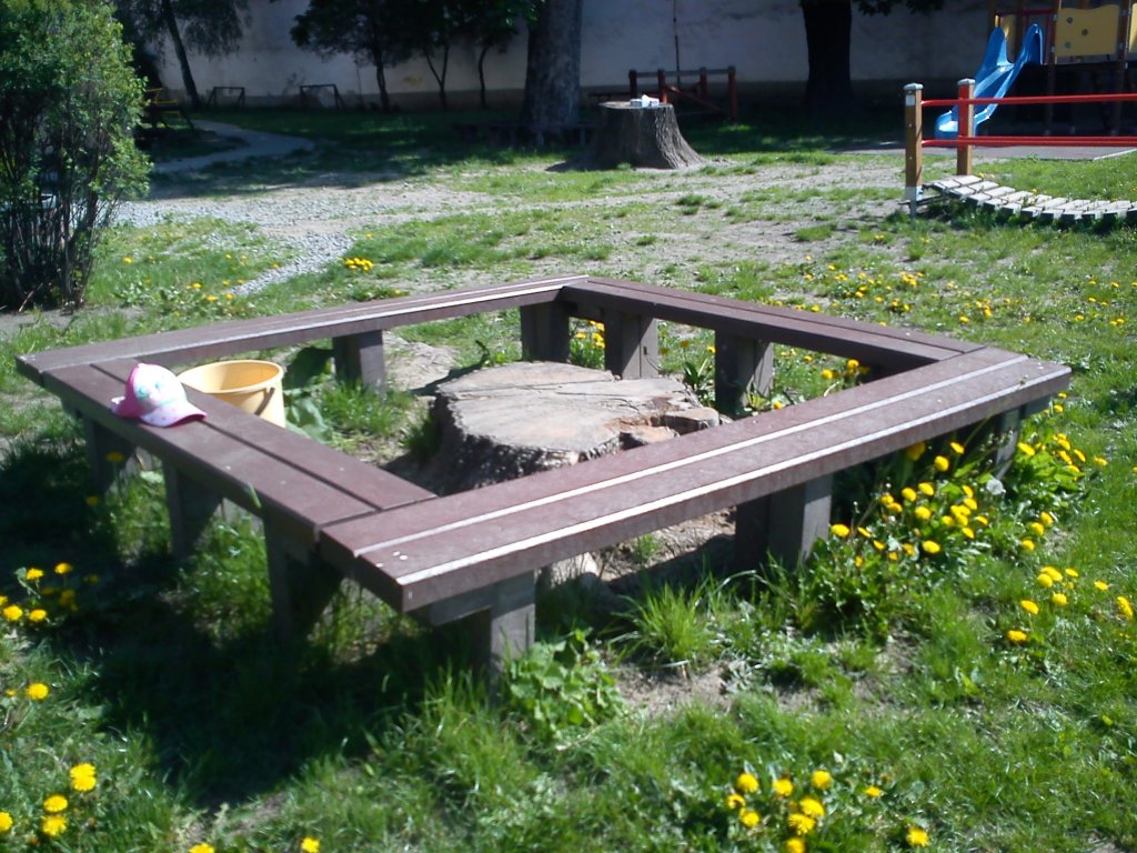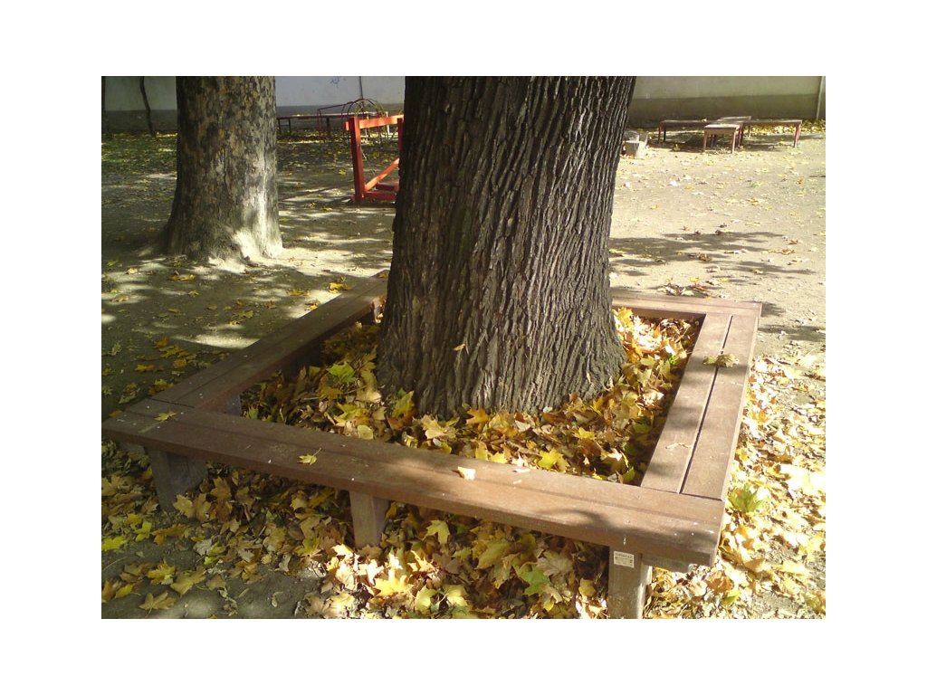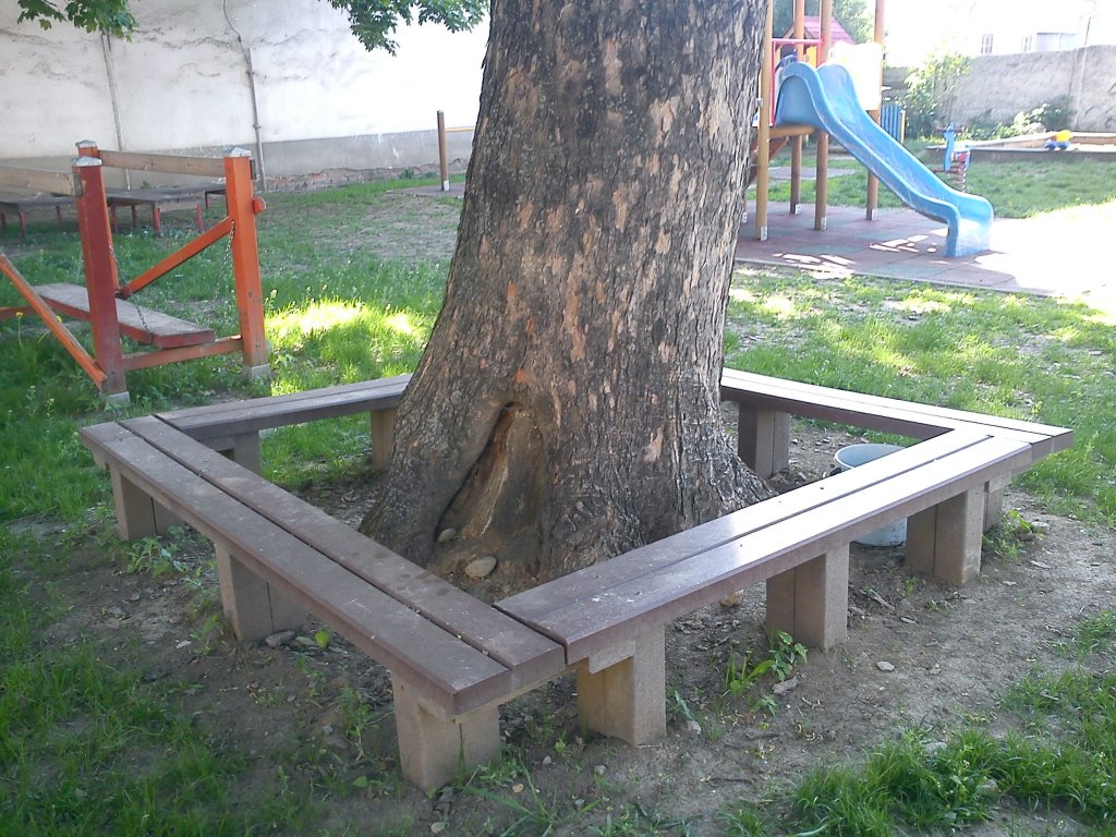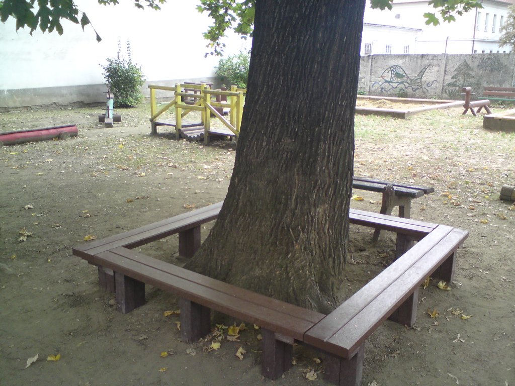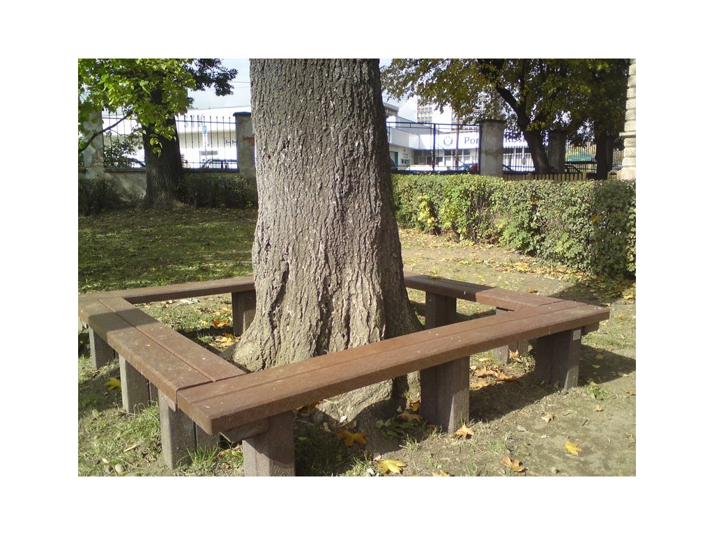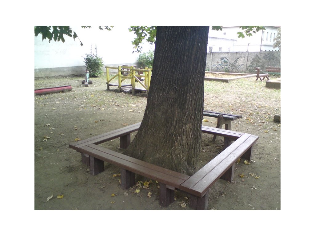 Sedenie okolo stromu pozostáva zo 4 lavičiek zložených z dvoch spojených dosiek o šírke 13 cm a hrúbke 3,5 - 5 cm v závislosti od celkovej dĺžky. Dosky sú v rôznych farbách podľa požiadaviek zákazníka. Sedenie je vhodné do škôliek, škôl, parkov.