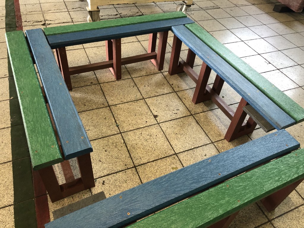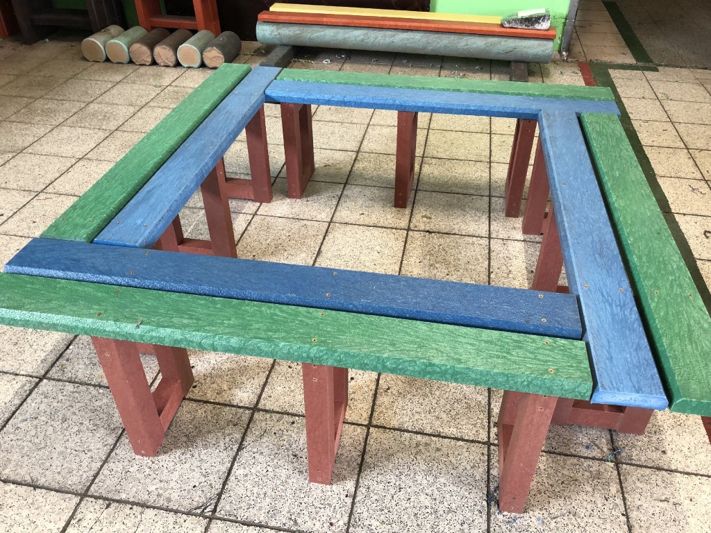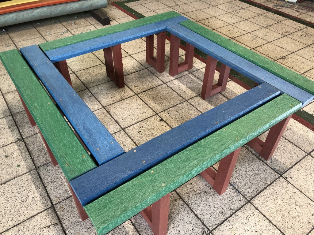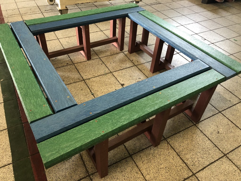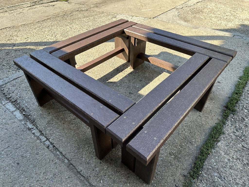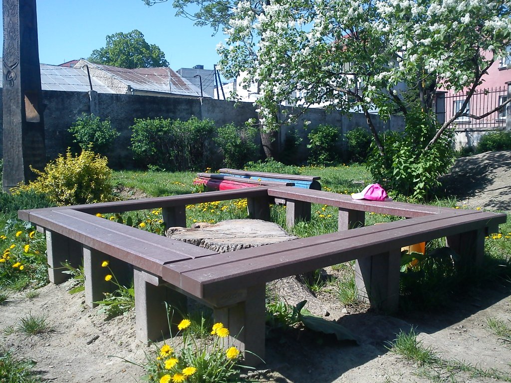 Sedenie okolo stromu pozostáva zo 4 lavičiek zložených z dvoch spojených dosiek o šírke 13 cm a hrúbke 3,5 - 5 cm v závislosti od celkovej dĺžky. Dosky sú v rôznych farbách podľa požiadaviek zákazníka. Sedenie je vhodné do škôliek, škôl, parkov.