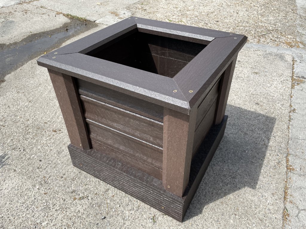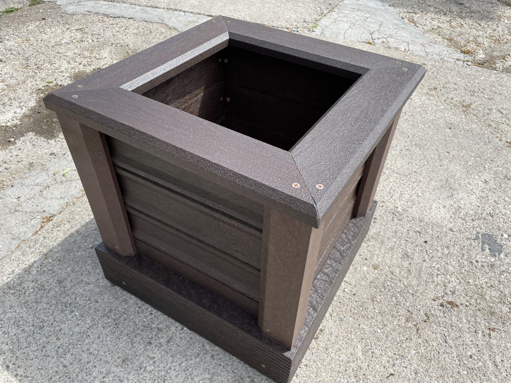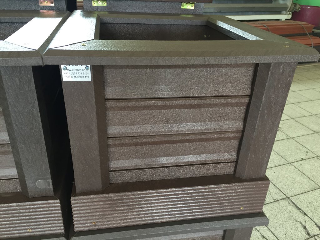 Štvorcový kvetináč, hnedý alebo vo farebnej dvojkombinácii, klasický 50 x 50 cm, výška 45 cm. Rôzne prevedenia použitím viacerých profilov.