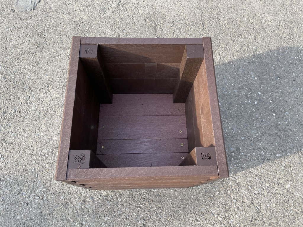 Kvetináč je vyrobený z tzv. plotových dosiek. Je nenáročný a jednoduchý. Materiál je stálofarebný, bezúdržbový a odolný voči poveternostným vplyvom. Je vhodný do záhrady, no i na náročnejšie miesta ako sú parky, školské ihriská.