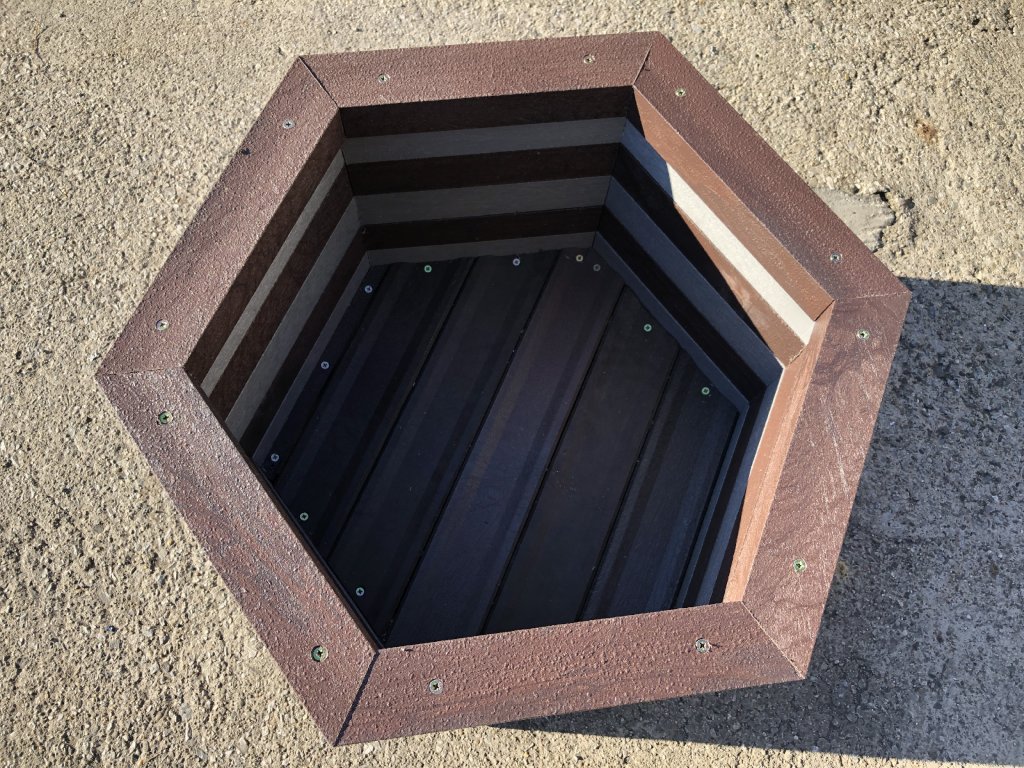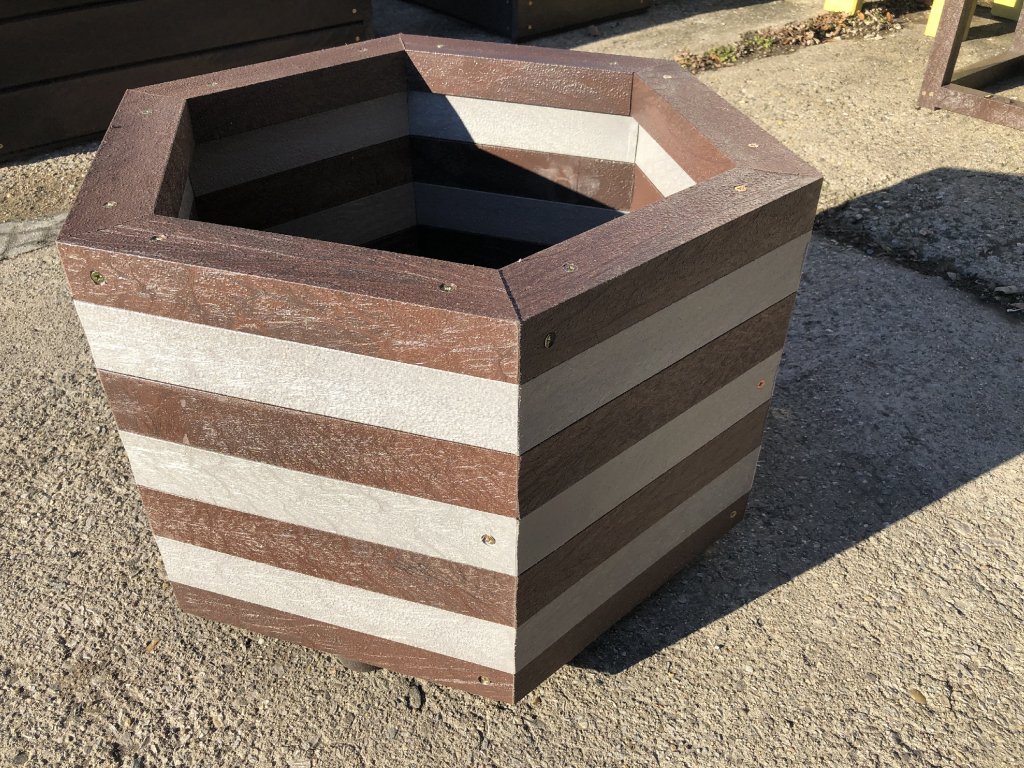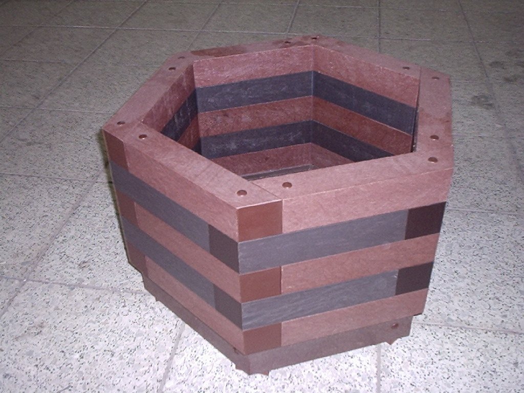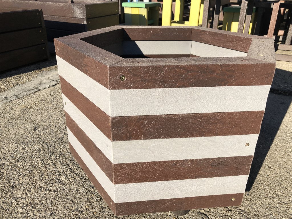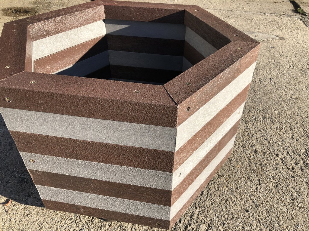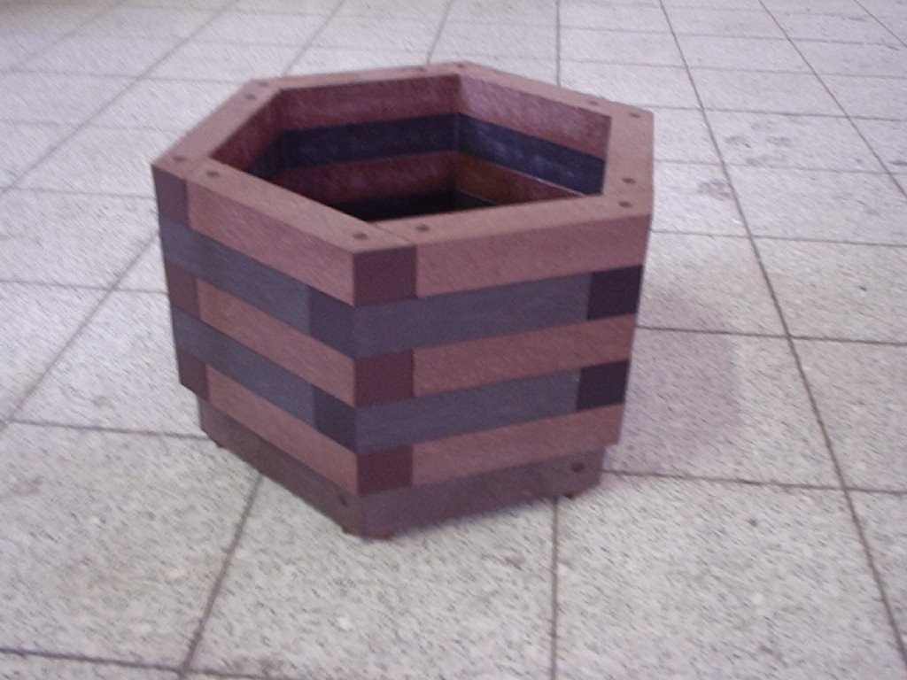 Kvetináč šesťhran je atypický kvetináč s rozmermi približne 60 x 60 cm. Môžu byť použité hranolčeky rôznych farieb a rozmerov. Použitý materiál je pevný, stálofarebný, bezúdržbový a odolný voči poveternostným podmienkam.