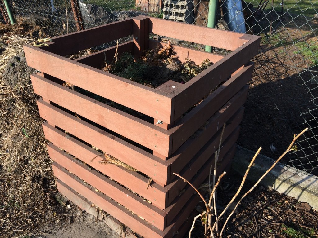 Kompostér malý, rozmer 90 x 90 cm,  výška 90 cm, váha 60 kg, 1m3, odnímateľná časť na motýlik.