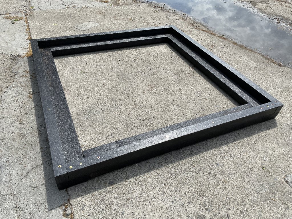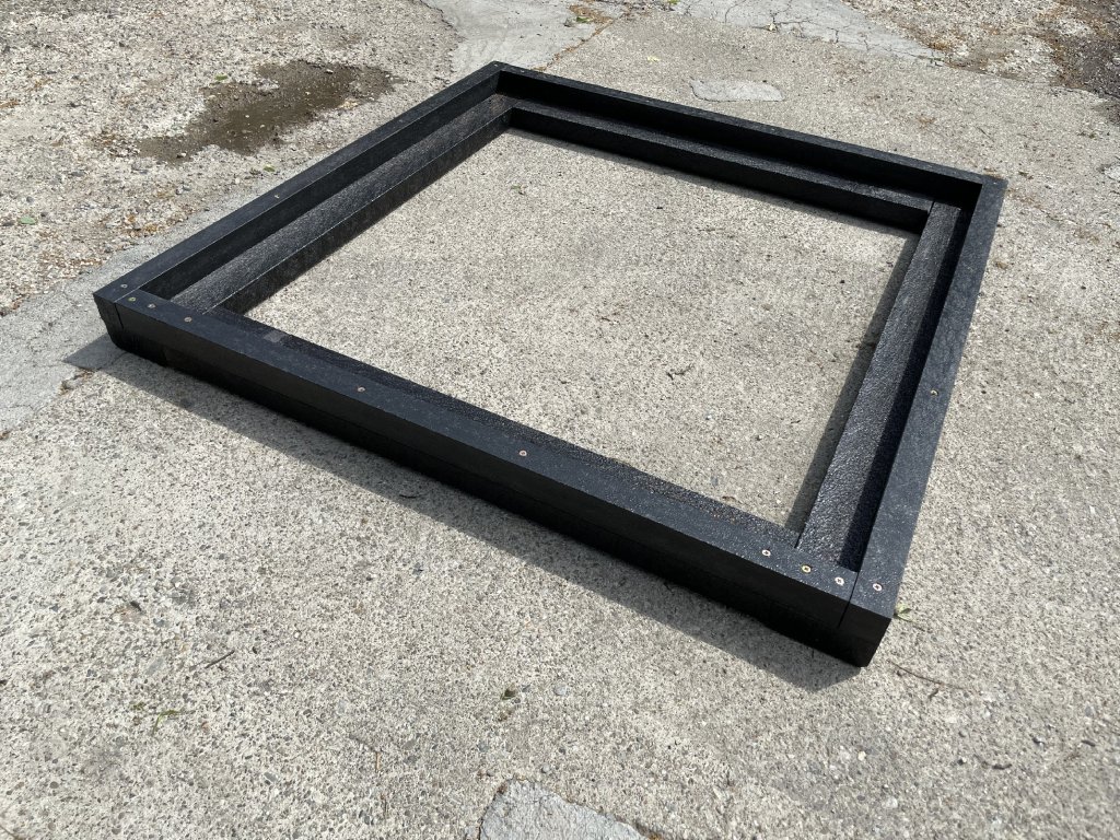 Rám na šachtu alebo poklop s vonkajšími rozmermi 80 x 80 cm. Je vyrobený z plného, počasiu odolného materiálu, je bezúdržbový a farebne stály. Materiál je ľahší ako kov, no vhodnejší ako drevo.