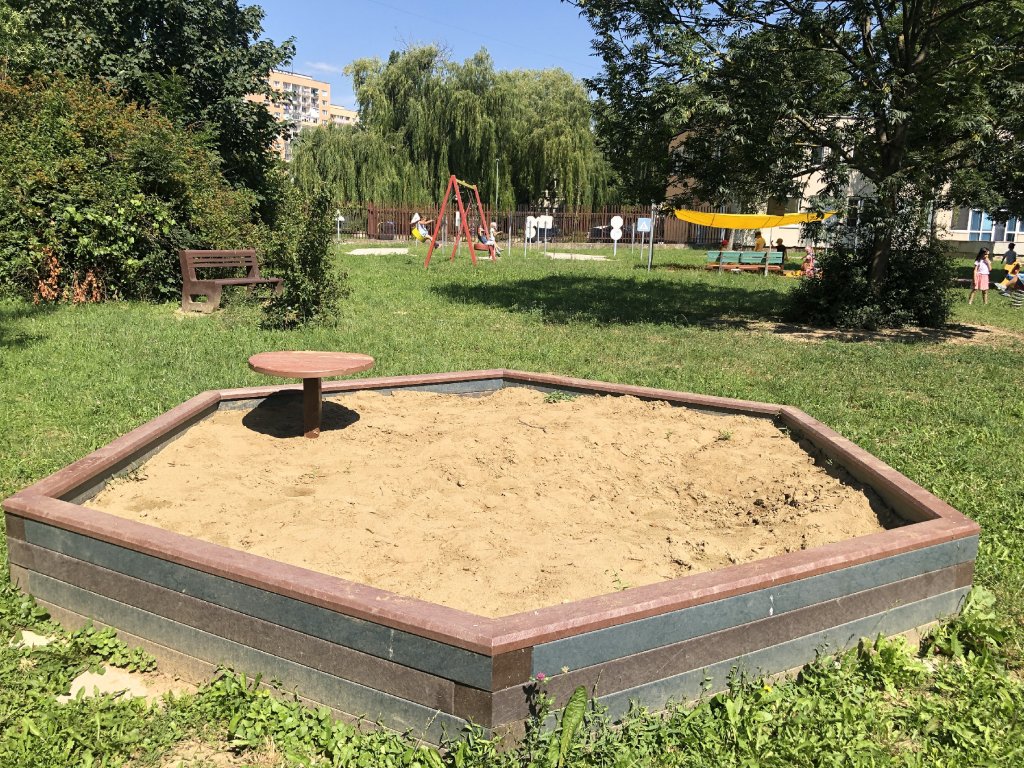 Pieskovisko pozostáva z hranolčekov, ktoré sa pospájajú bežným spojovacím materiálom ako drevo. Farebné prevedenie možné podľa požiadaviek zákazníka.