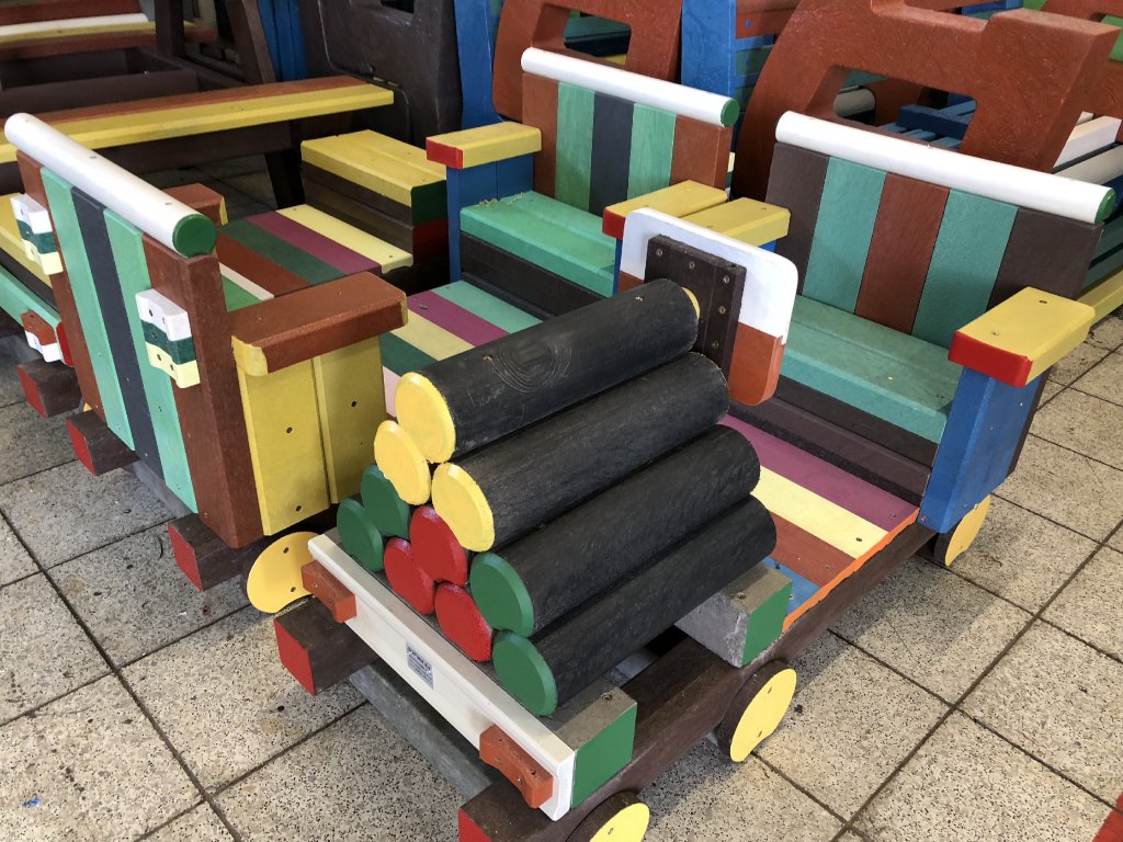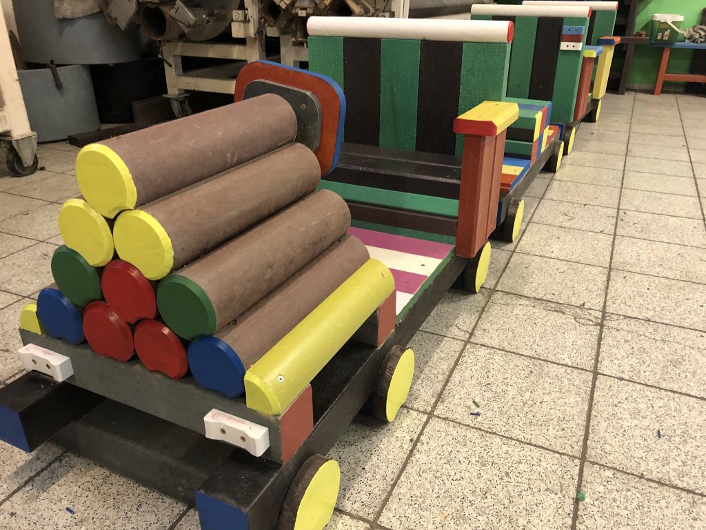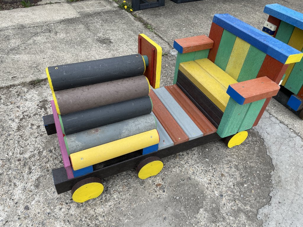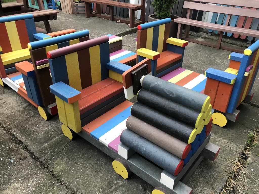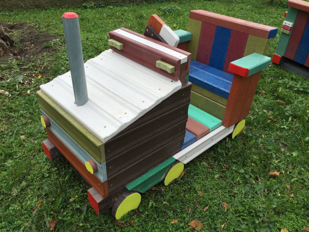Detský vláčik je vhodným doplnkom školských dvorov. Rušeň a vozne vieme vyrobiť podľa požiadavky zákazníka individuálne. Existuje veľa možnosti ako vyrobiť úplne nový vláčik s rušňom a vozňami, prípadne lacnejšími kladinami, ktorú sú vhodné na sedenie. Rekonštrukcia - alebo aj výmena starého dreveného vláčika za nové drevené alebo plastové dosky je tiež v našom výrobnom programe.
