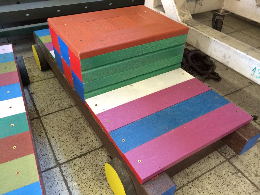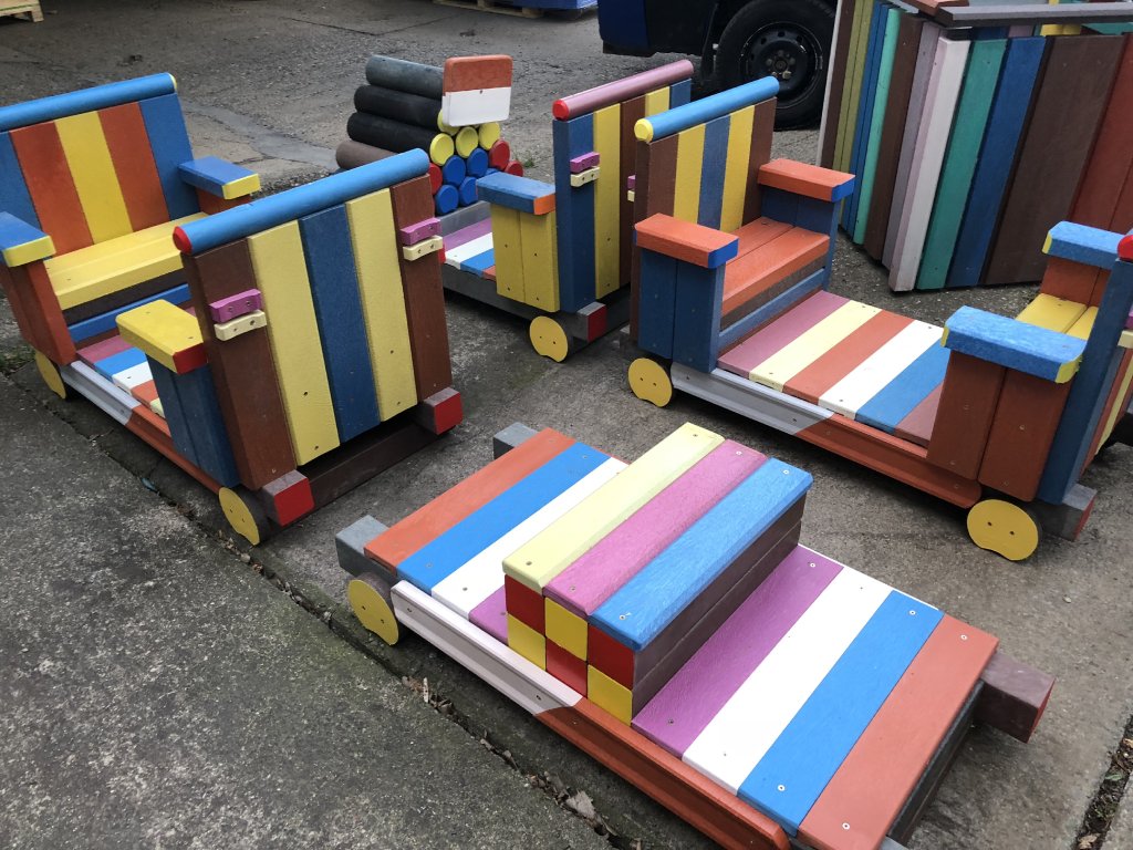 Detský vláčik je vhodným doplnkom školských dvorov. Rušeň a vozne vieme vyrobiť podľa požiadavky zákazníka individuálne. Existuje veľa možnosti ako vyrobiť úplne nový vláčik s rušňom a vozňami, prípadne lacnejšími kladinami, ktorú sú vhodné na sedenie. Rekonštrukcia - alebo aj výmena starého dreveného vláčika za nové drevené alebo plastové dosky je tiež v našom výrobnom programe.