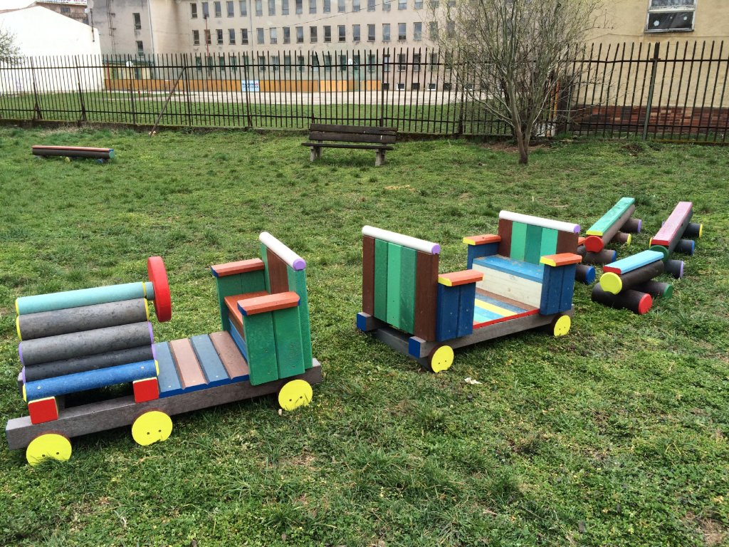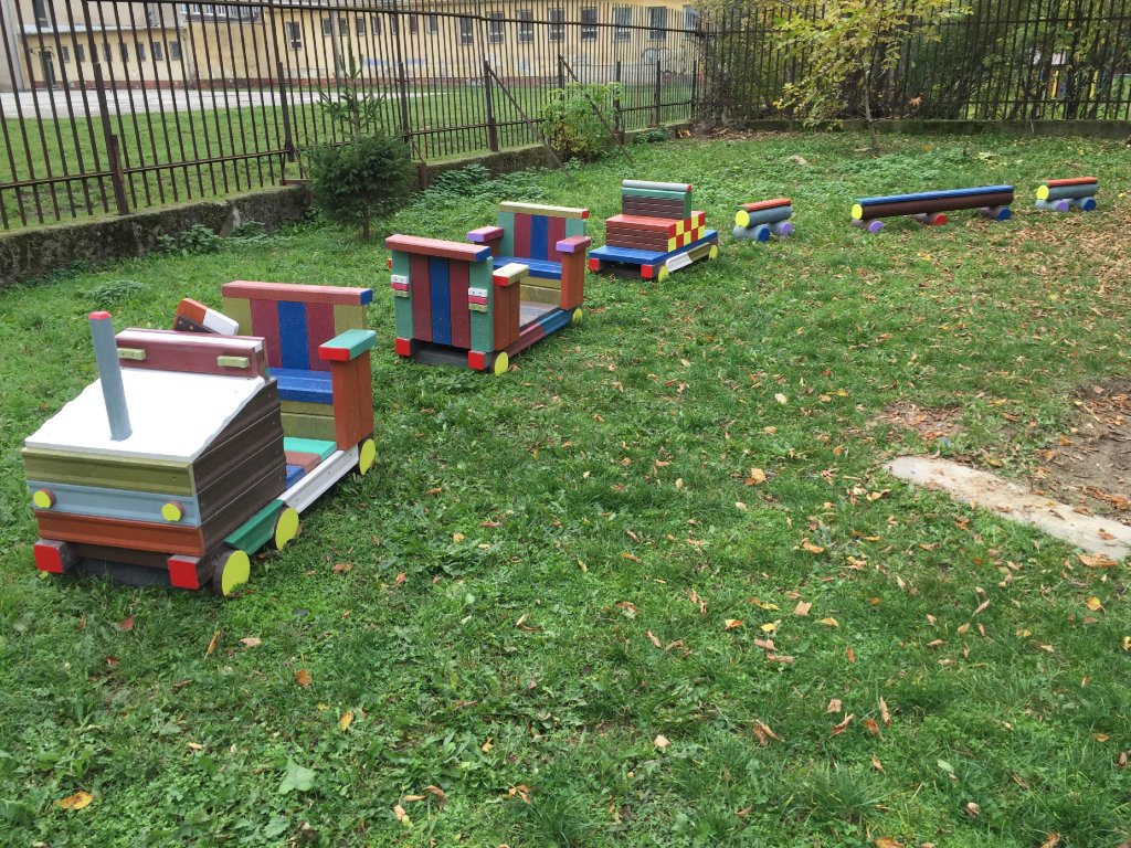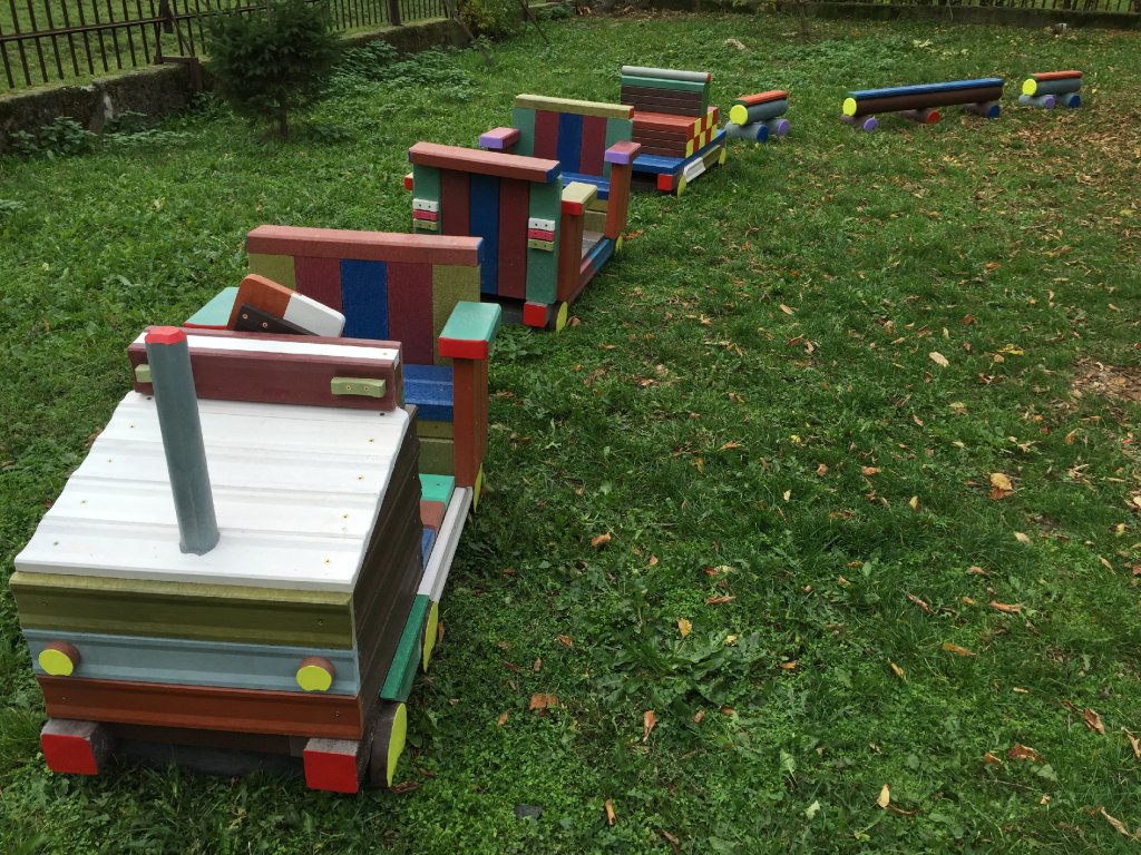 Detský vláčik je vhodným doplnkom školských dvorov. Rušeň a vozne vieme vyrobiť podľa požiadavky zákazníka individuálne. Existuje veľa možnosti ako vyrobiť úplne nový vláčik s rušňom a vozňami, prípadne lacnejšími kladinami, ktorú sú vhodné na sedenie. Rekonštrukcia - alebo aj výmena starého dreveného vláčika za nové drevené alebo plastové dosky je tiež v našom výrobnom programe.