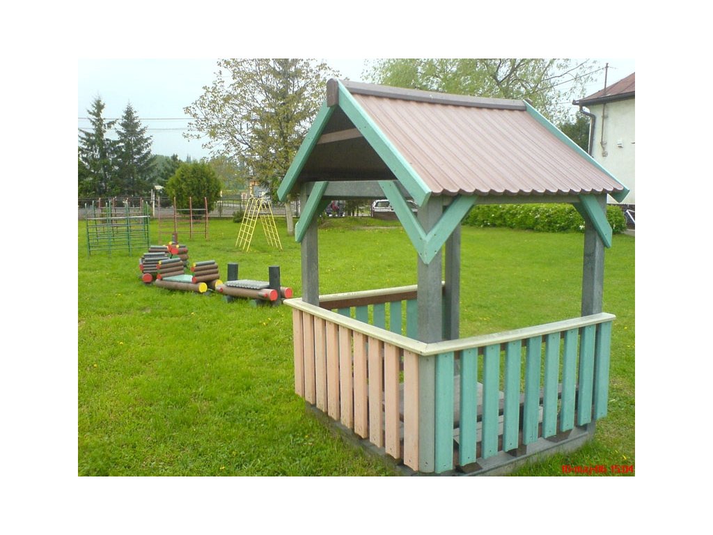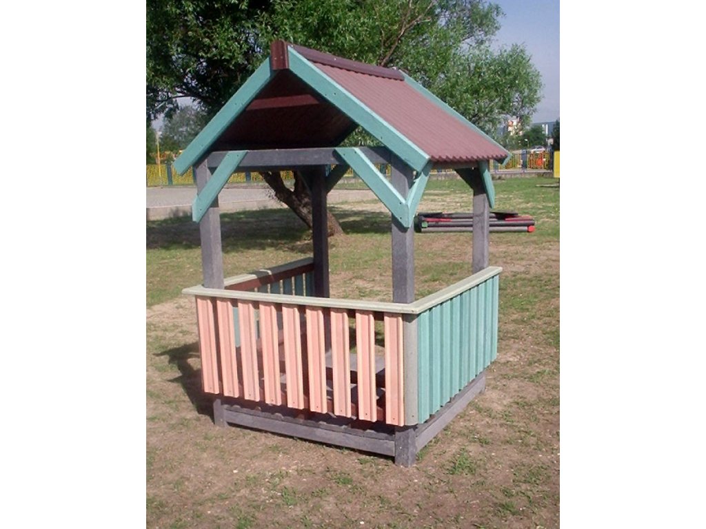 Detský altánok alebo malý domček vieme vyrobiť ako jednoduchý doplnok na školský dvor, alebo aj precíznejší s podlahou a lavičkami vo vnútri. Pestrosť farieb je pomerne bohatá, prípadne pre klasikov používame hnedý odtieň. Domček môže byť súčasťou iného prvku na dvore, prípadne rozšírený o šmýkačku alebo iný hrací prvok.