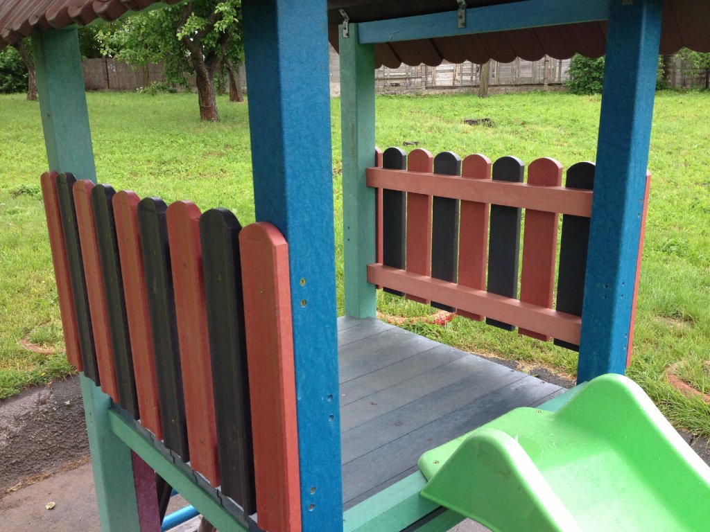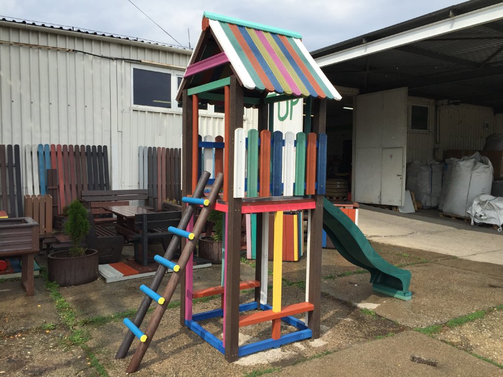Detský altánok alebo malý domček vieme vyrobiť ako jednoduchý doplnok na školský dvor, alebo aj precíznejší s podlahou a lavičkami vo vnútri. Pestrosť farieb je pomerne bohatá, prípadne pre klasikov používame hnedý odtieň. Domček môže byť súčasťou iného prvku na dvore, prípadne rozšírený o šmýkačku alebo iný hrací prvok.