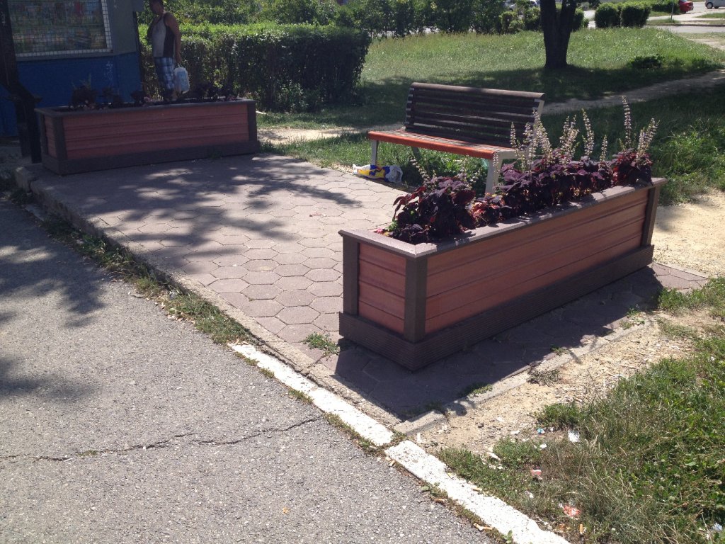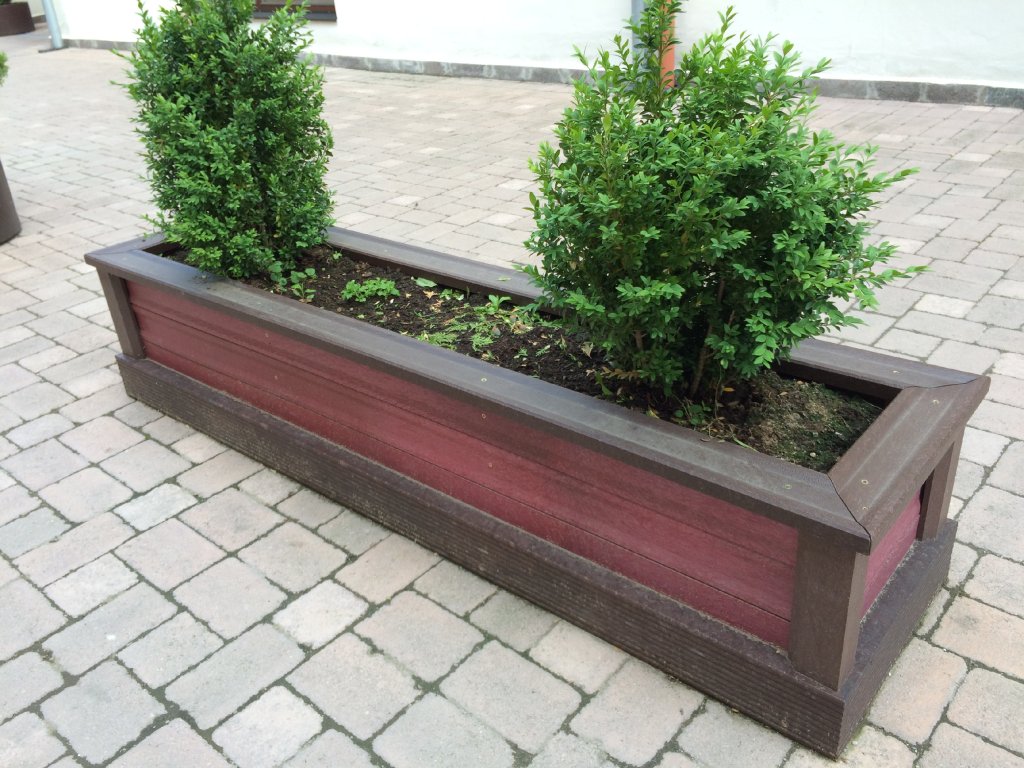 Rechteckiger Blumentopf aus Brettern mit den Maßen 40 x 150 cm, Höhe 45 cm. Unterschiedliche Farbvarianten bei Verwendung unterschiedlicher Profile. Ein einfacher oder raffinierter Blumentopf, der als Wohnwand zur Abgrenzung von Räumen geeignet ist.