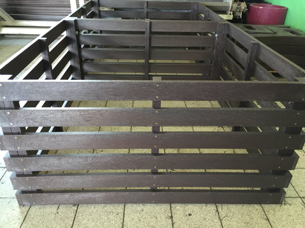 Ein großer Komposter kann auf verschiedene Arten hergestellt werden, beispielsweise quadratisch oder sechseckig, wobei unterschiedliche Profile und Farbkombinationen verwendet werden. Es eignet sich für Städte und Gemeinden, größere Gärten und Felder. Die ideale Lösung sind also zwei Komposter, in denen der Kompost aufbereitet und im anderen verwendet wird. Wandabmessungen können bis zu zwei Meter lang sein und mehrere Winkel aufweisen.