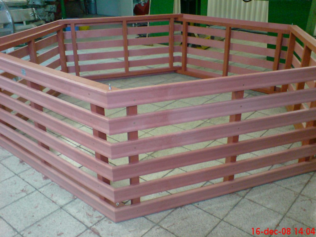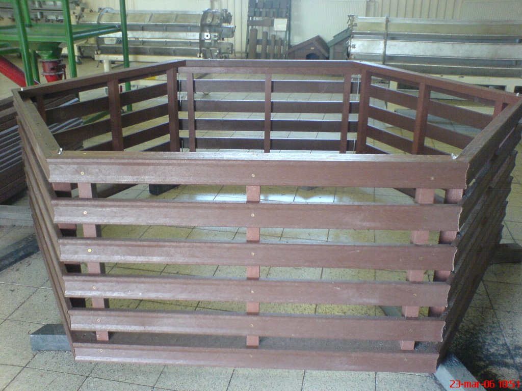Ein großer Komposter kann auf verschiedene Arten hergestellt werden, beispielsweise quadratisch oder sechseckig, wobei unterschiedliche Profile und Farbkombinationen verwendet werden. Es eignet sich für Städte und Gemeinden, größere Gärten und Felder. Auch zwei Komposter sind eine ideale Lösung, in einem wird der Kompost aufbereitet und im anderen genutzt. Wandabmessungen können bis zu zwei Meter lang sein und mehrere Winkel aufweisen.
