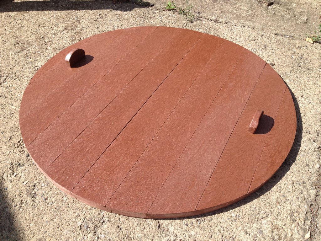 Kanalabdeckung, rund, massiv, nach Maß. Aus stabilem, dauerhaft färbendem Kunststoff. Das Material ist wartungsfrei und witterungsbeständig.