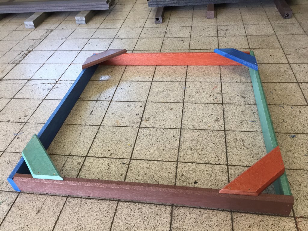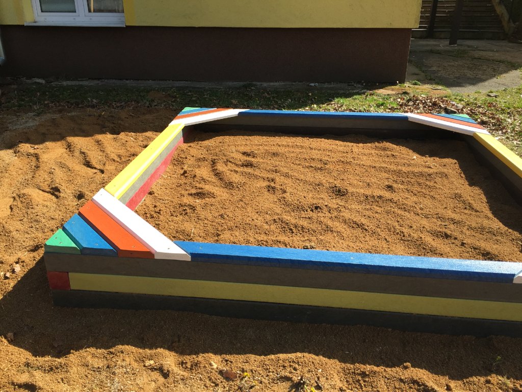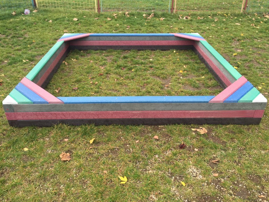 Der 2 x 2 m große Prismensandkasten ist einer der beliebtesten und meistverkauften Sandkästen überhaupt. Einfache Montage und Langlebigkeit sind ein Garant für Zufriedenheit. Es besteht aus recycelten Materialien mit Zertifikat. Unterschiedliche Farbausführungen der Oberflächenplatten und Lagerverfügbarkeit sind für Sie von Vorteil.