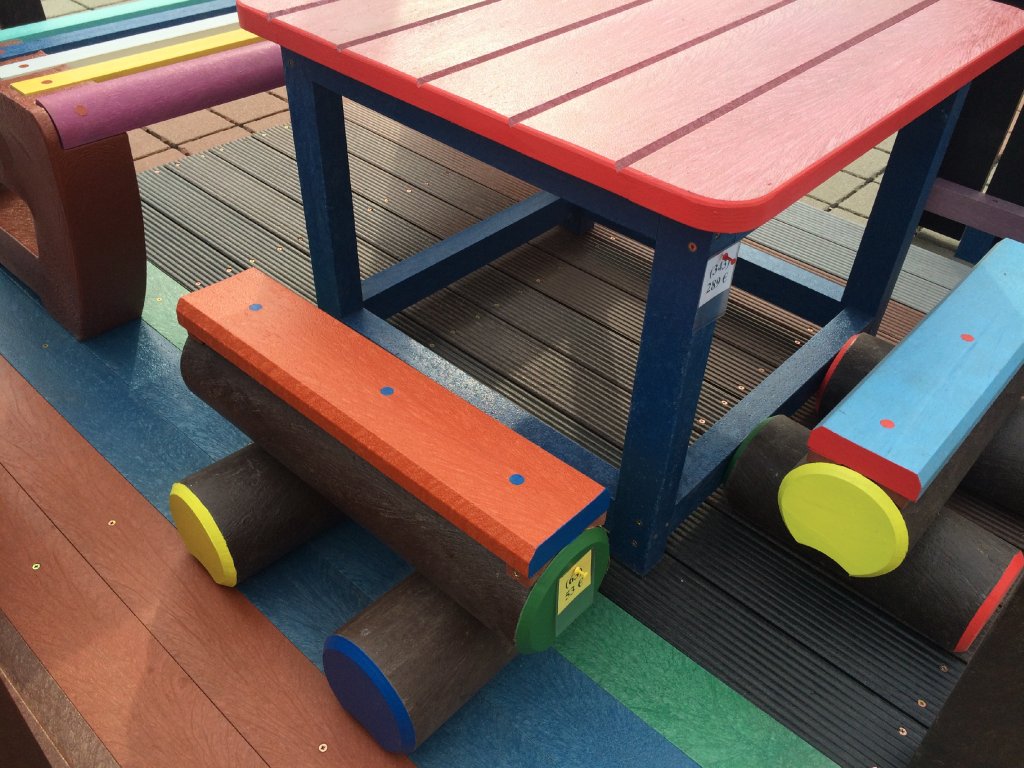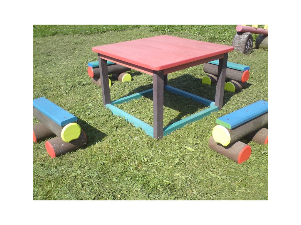 Ein kleiner Tisch mit einer Größe von ca. 100 x 100 cm und kleinen Gewichten daran sind eine fröhliche Bereicherung für jeden Schulhof. Die Auswahl an Farben ist groß. Sie bestehen aus festem, farbechtem, wartungsfreiem und witterungsbeständigem Material.