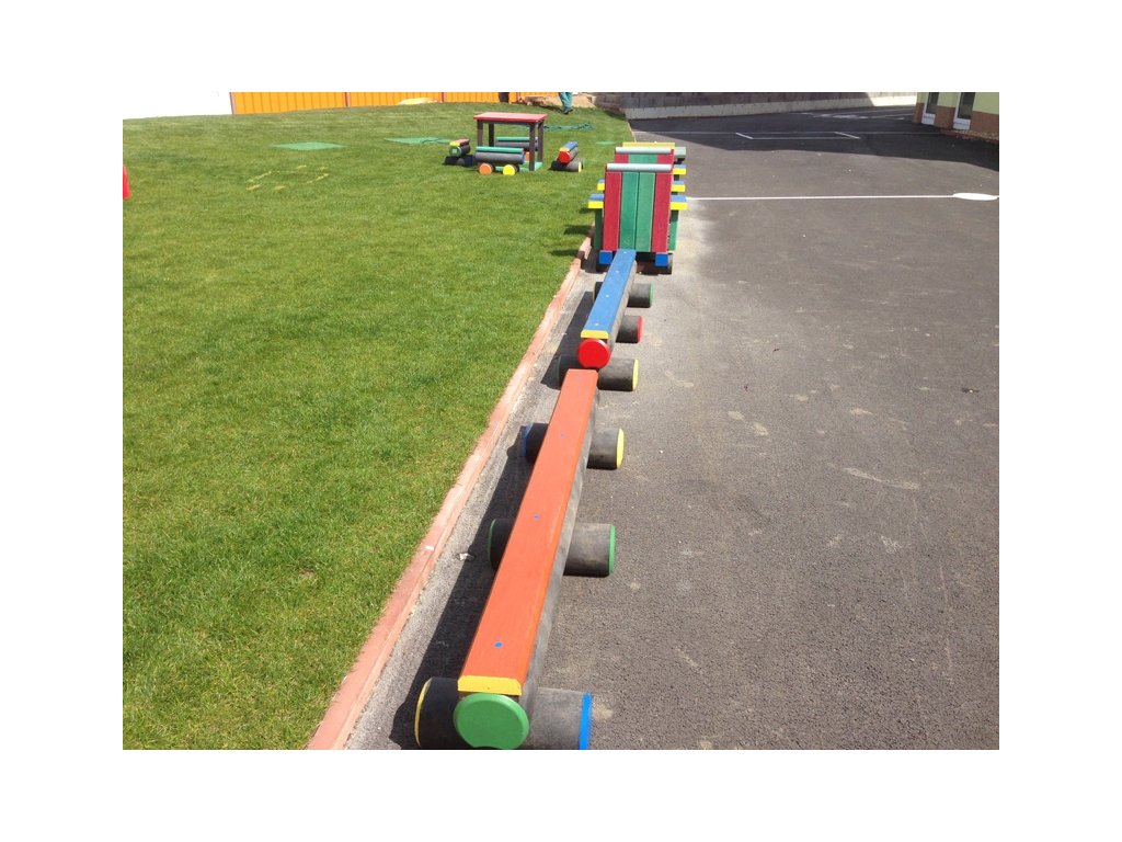 Ein Balken ist eine ideale Alternative zu einer Bank. Es verfügt über eine niedrige Sitzfläche von ca. 35 cm, geeignet für die Unterbringung mehrerer Kinder, oder als Ergänzung zu einer Kindereisenbahn oder einem „Amphitheater“ auf dem Schulhof, geeignet für verschiedene Beratungs- und Lernsitzun