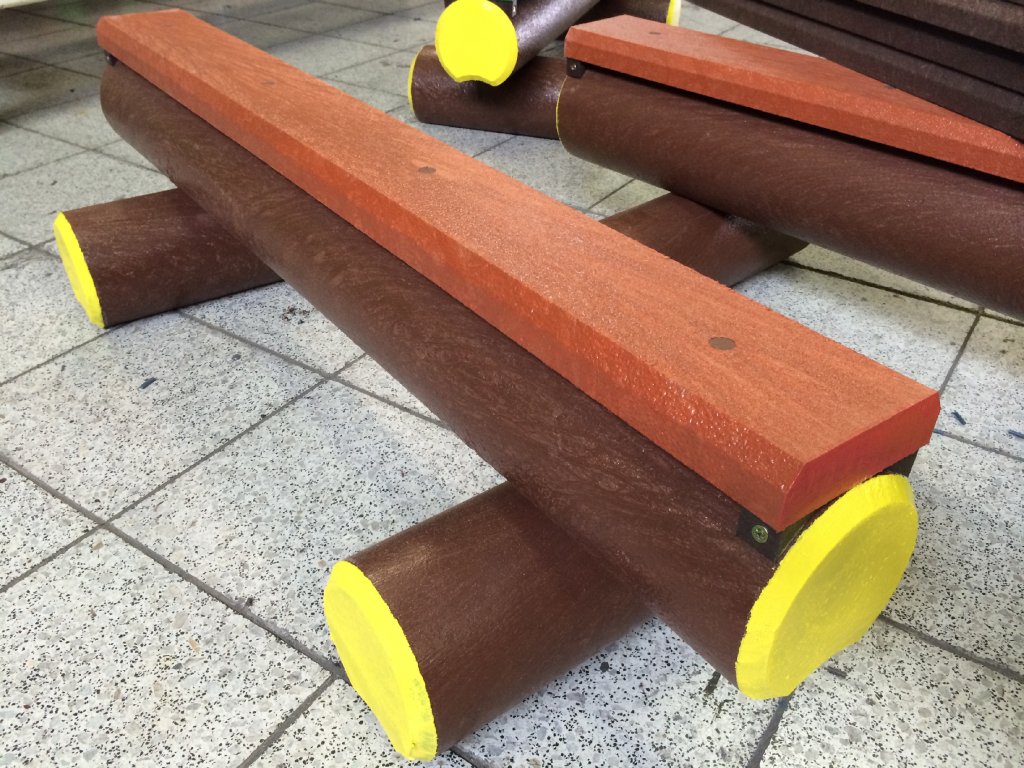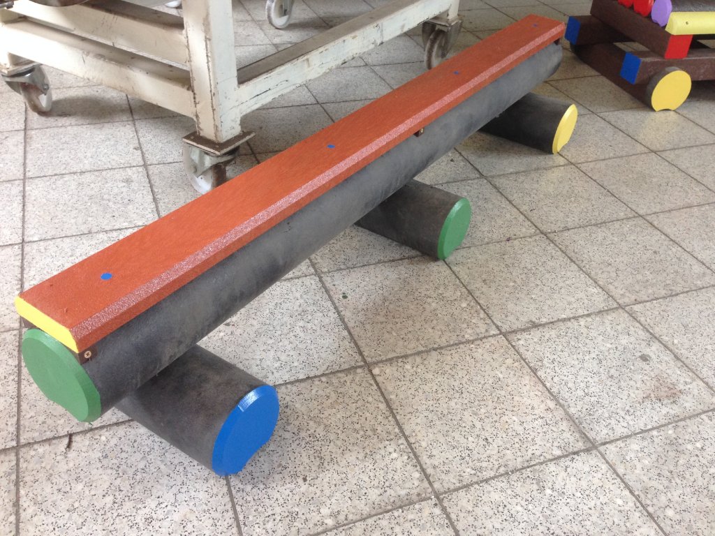Ein Balken ist eine ideale Alternative zu einer Bank. Es hat einen niedrigen Sitz von ca. 35 cm, der für mehrere Kinder geeignet ist, um zu sitzen, oder als Ergänzung zu einem Kinderzug oder für ein "Amphitheater" im Schulhof, das für verschiedene Konsultationen und Lernen geeignet ist.