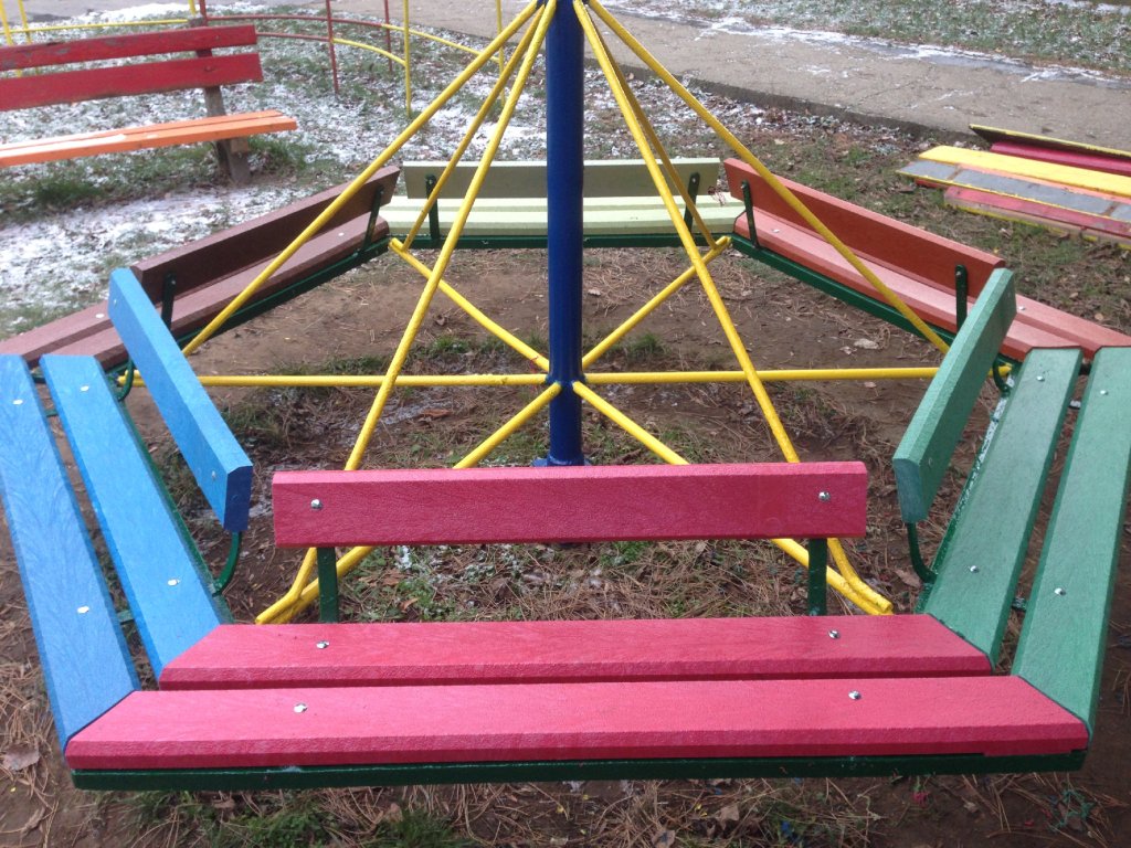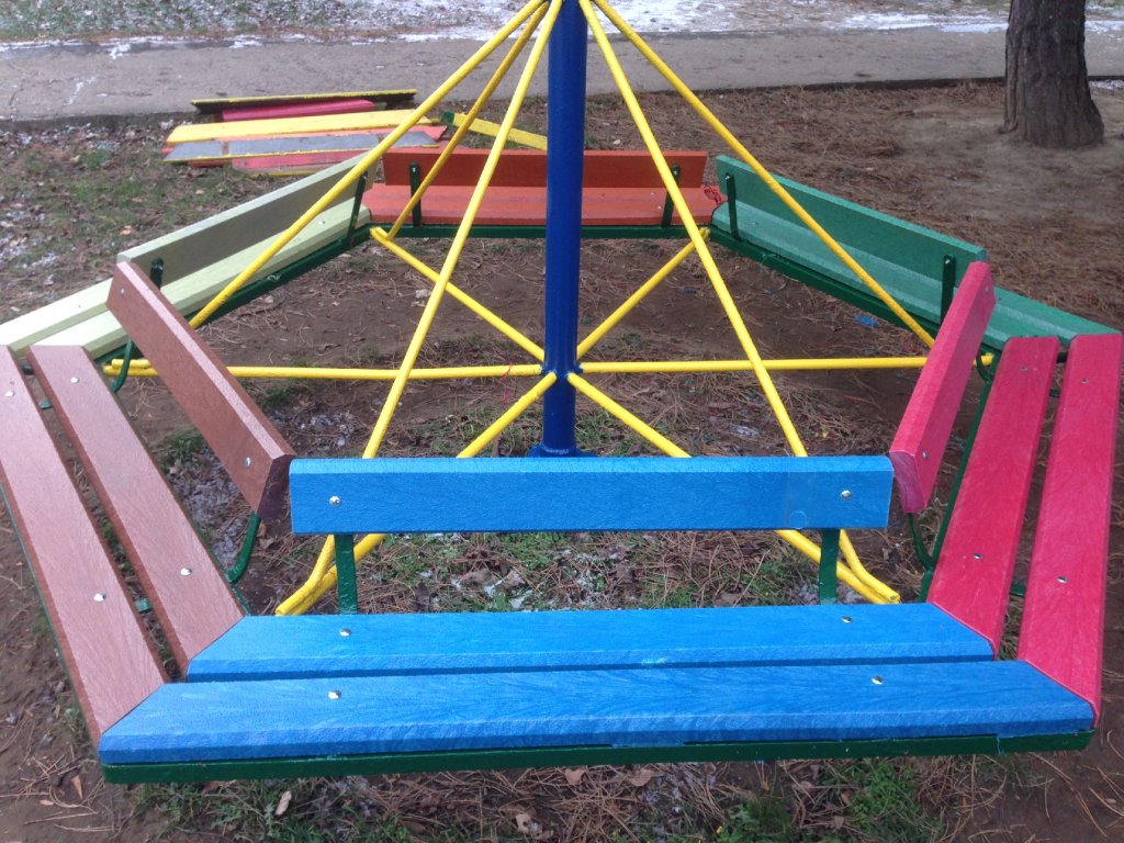 Ersatz von Holzbrettern durch langlebige Kunststoffprofile. Sie sind wartungsfrei, farbecht und witterungsbeständig. Auswahl weiterer kleiner Kinderelemente oder durch Ergänzung, oder im Austausch gegen Neuteile in anderen Farben und Designs.