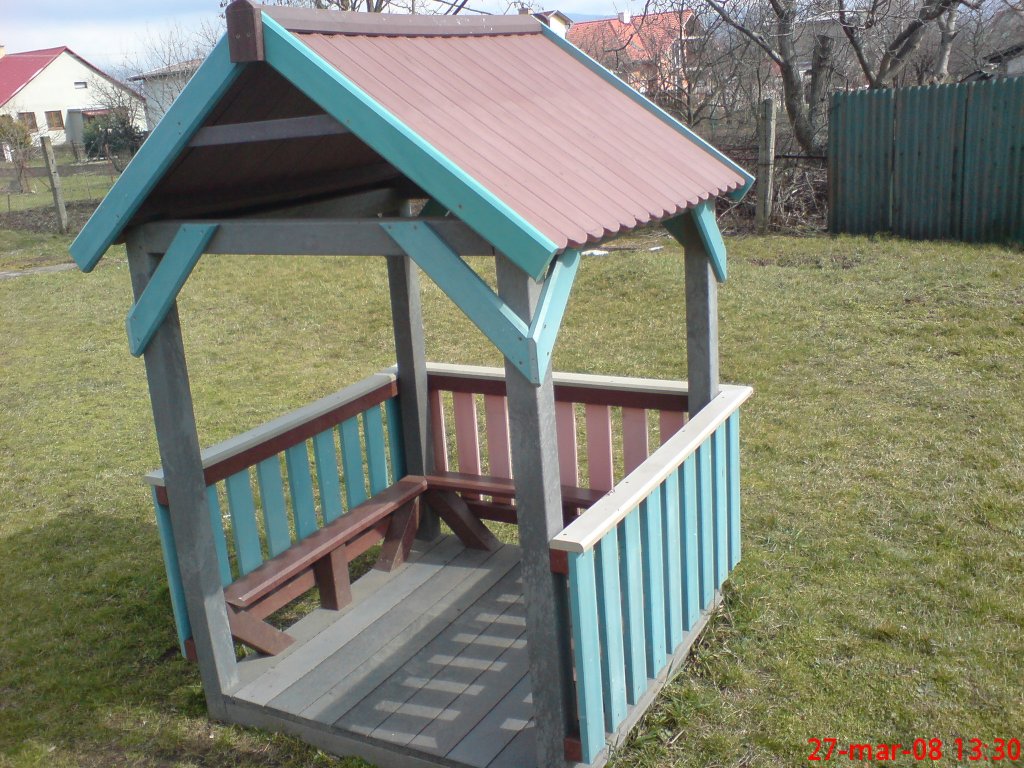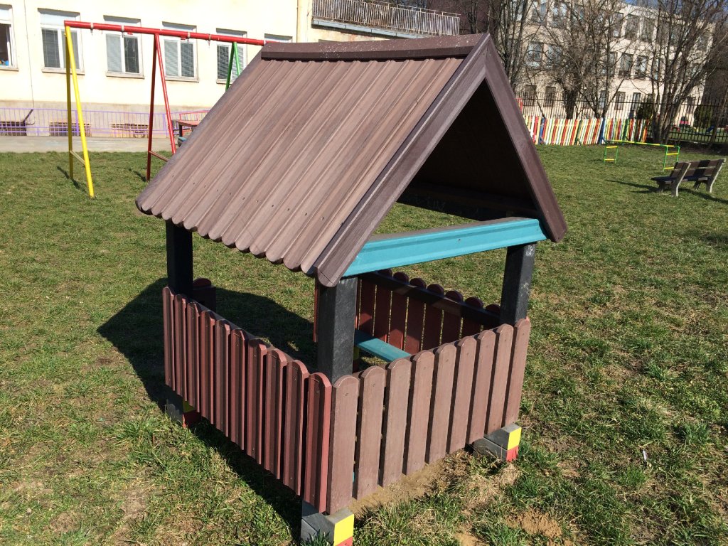 Ein kleines Kinderhaus oder ein Pavillon ist eine passende Ergänzung für den Schulhof. Es kann auf verschiedene Arten hergestellt werden, zum Beispiel mit einem Boden und Bänken im Inneren, einem Dach, in verschiedenen Farb- und Größenvarianten. Das Material ist stark, farbecht, wartungsfrei und witterungsbeständig.