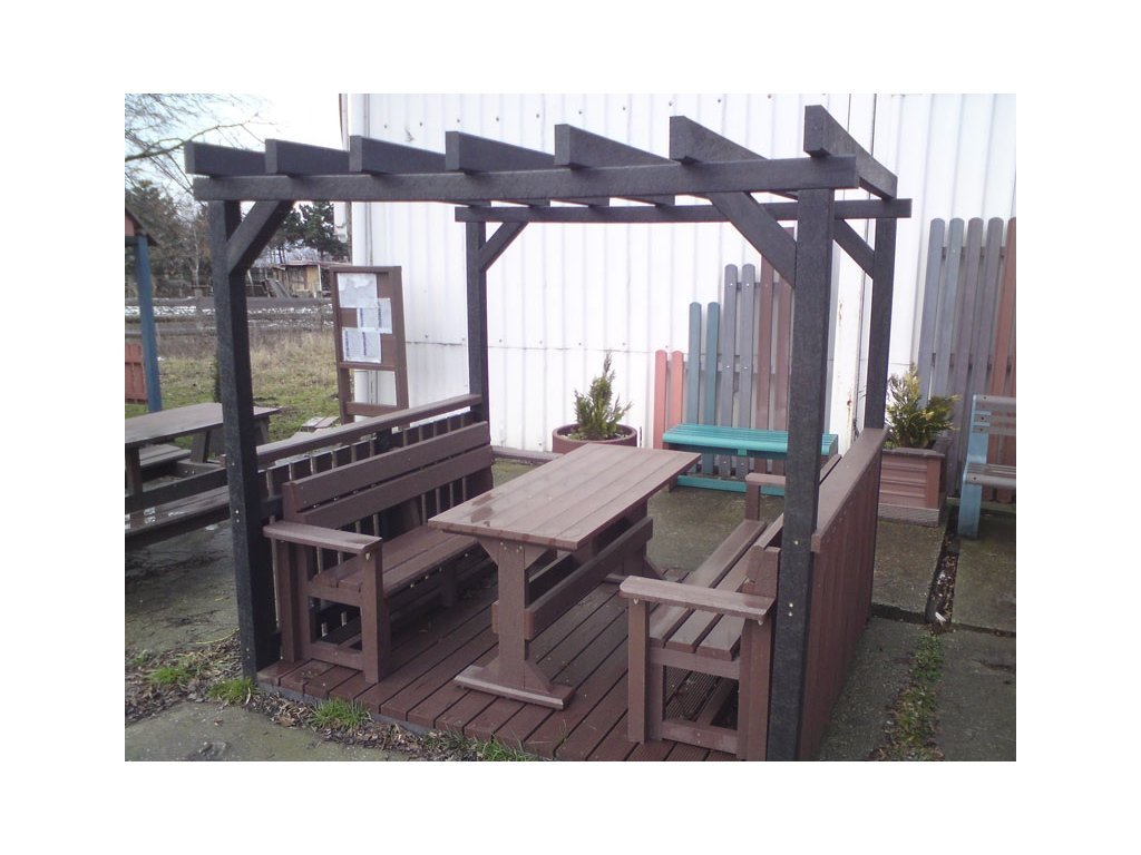09 c. Pergola bestehend aus Prismen und Brettern