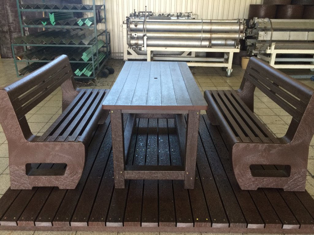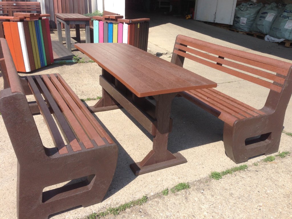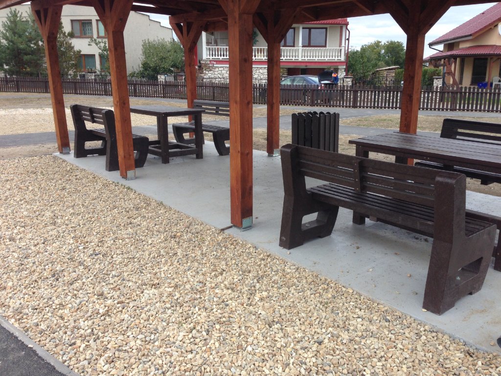The garden furniture consists of two benches and a table. The material is very durable and permanent. You can choose several variants, for example a solid table with four legs made of 9x9 cm squares and 2 L-bench benches. For example, the flooring is also ideal for this product, which comes in two or three types of profiles, for example profile D-120x40-2200 / w x h x l / in mm. It is a suitable solution for inaccessible terrains of cottages and gardens, where otherwise other construction work would be necessary, and with such a plate completely made by us or by yourself, you can easily create a maintenance-free terrace - non-slip floor that will last you for many years.
