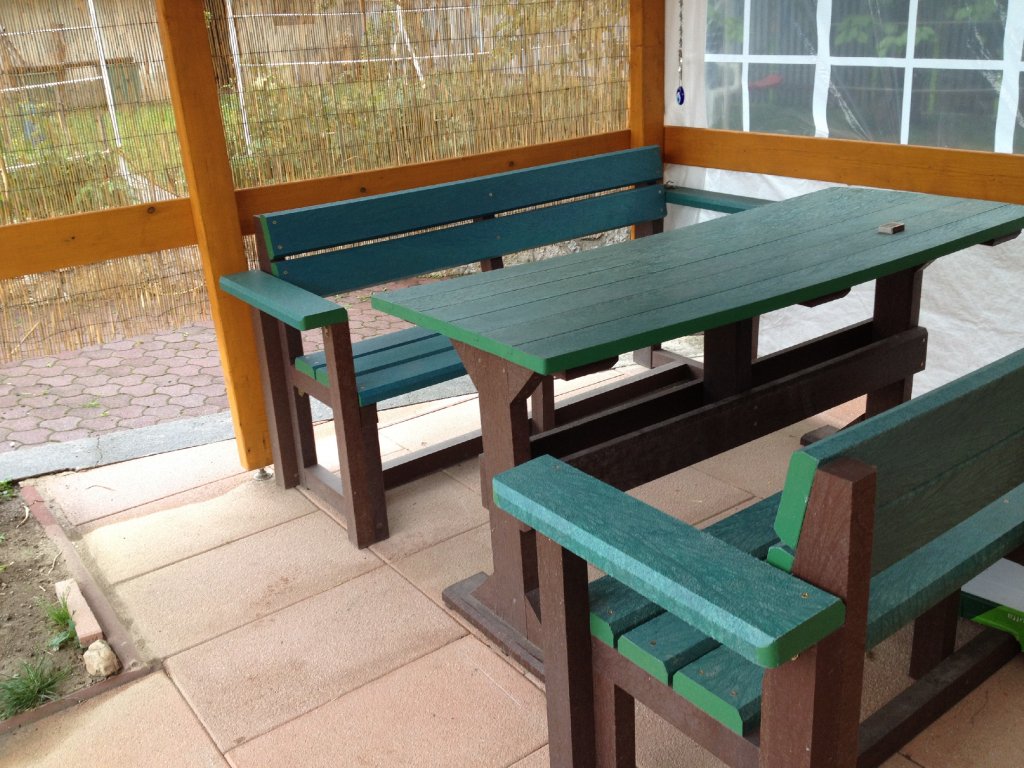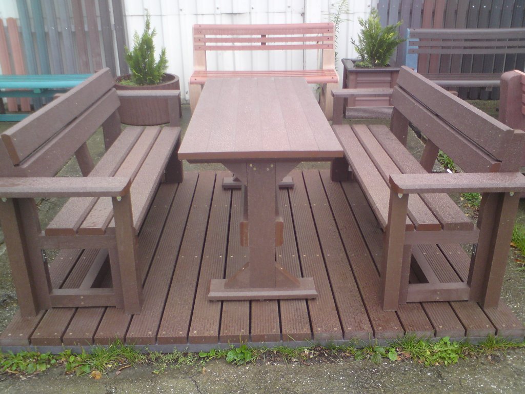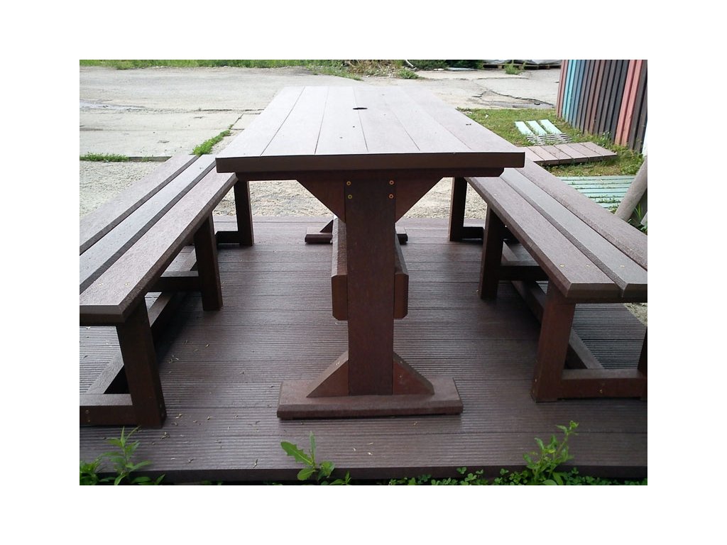 The classic plank table with two legs is an elegant solution for any garden. The material is weather-resistant and permanent. Colour combinations can be ordered according to customer requirements. You can also order a set of benches for each table, either with or without a backrest.