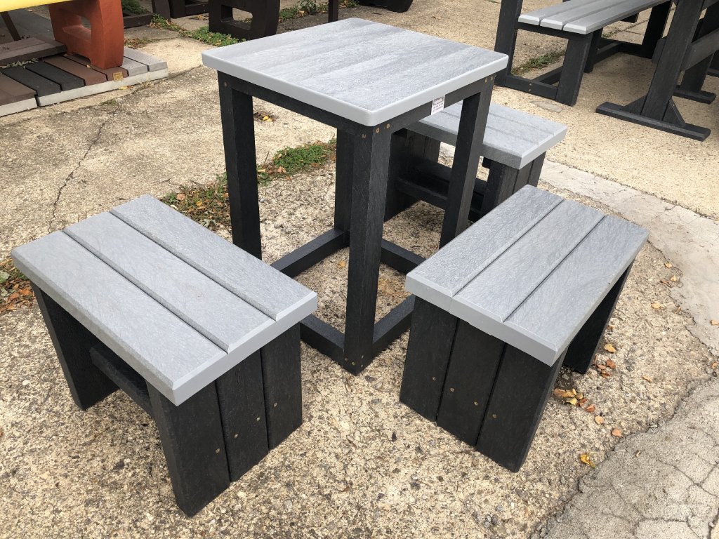 The garden furniture consists of a prismatic solid table and 4 small solid chairs. It is also suitable for nurseries or schools because of its sturdy appearance and functionality. It is maintenance-free and weather-resistant.
