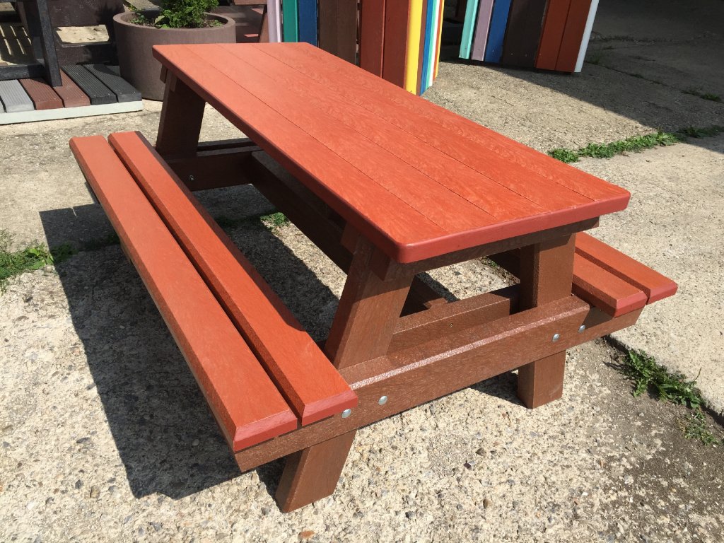 A picnic or beer table designed for the gardens of bars, restaurants and hotels is a suitable accessory for year-round operation. It is mainly produced in lengths up to 160 cm in brown or "tailor-made" in various colour combinations or made of wood.