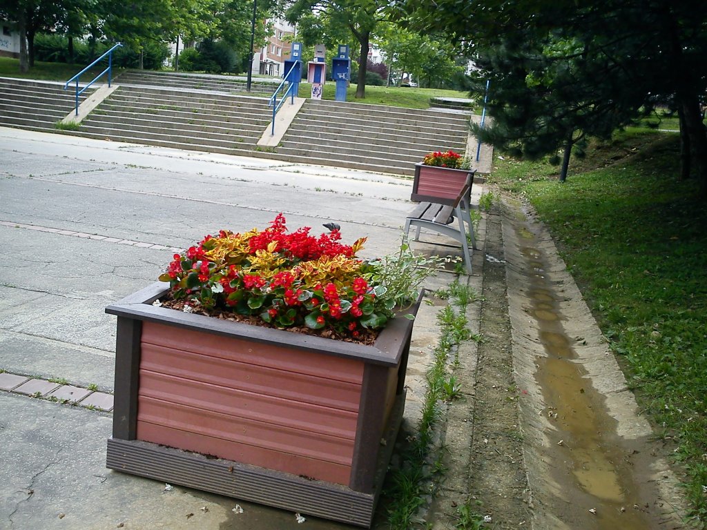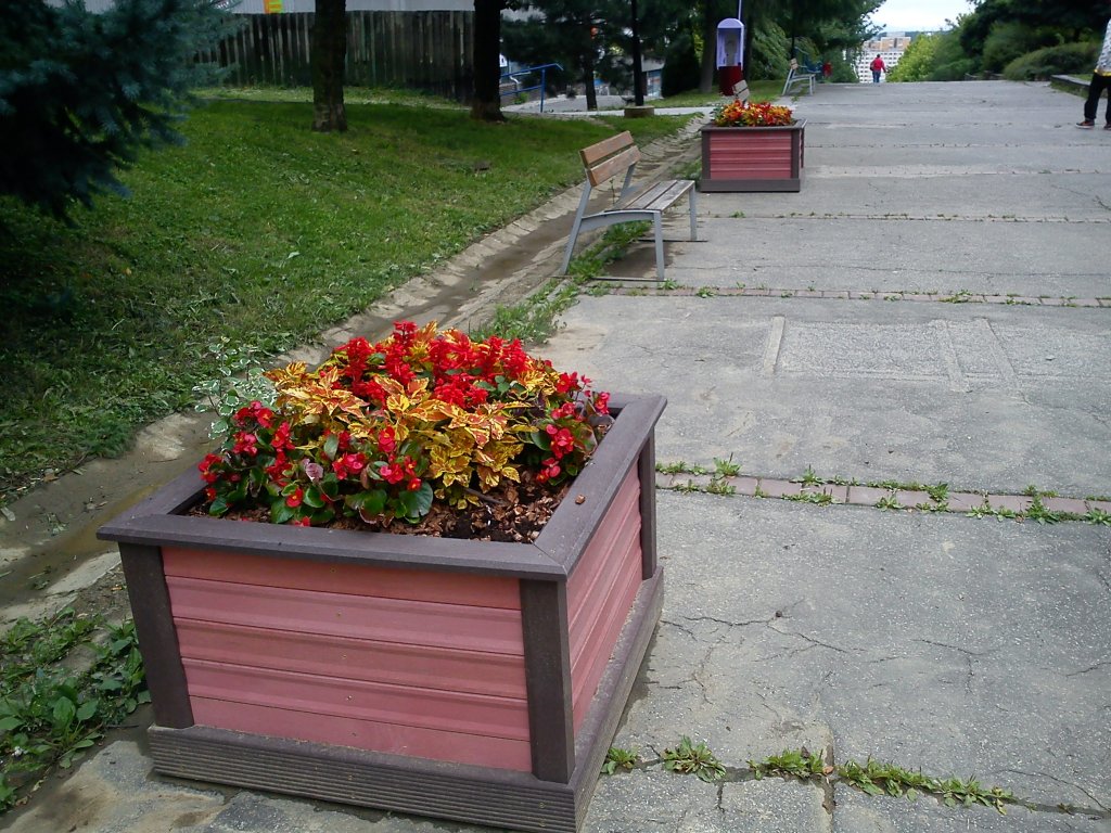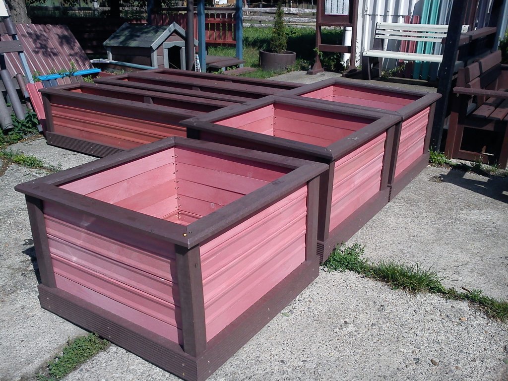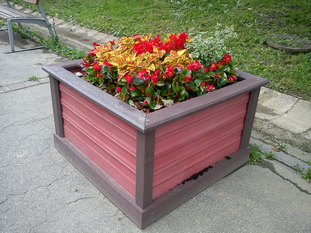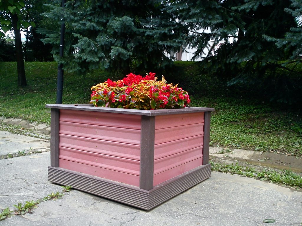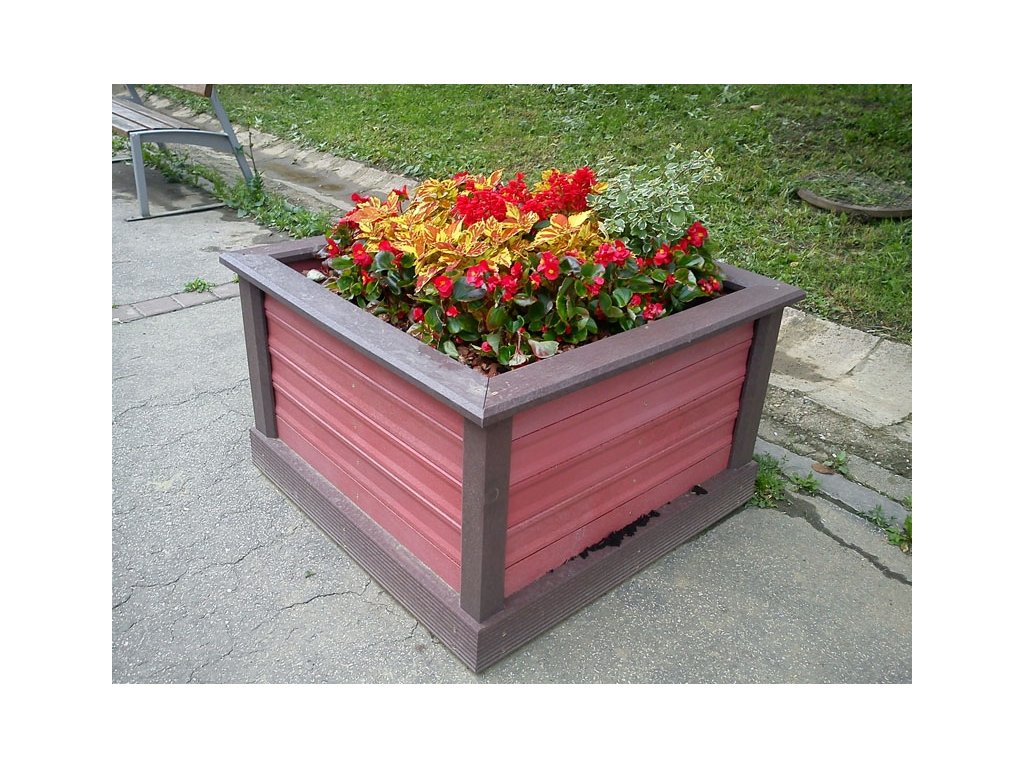 Square flower pot, brown, or in two colour combinations, size 100 x 100 cm width, height 50 cm. Various versions using several profiles.
