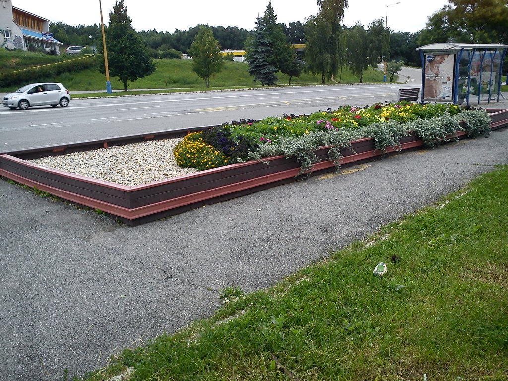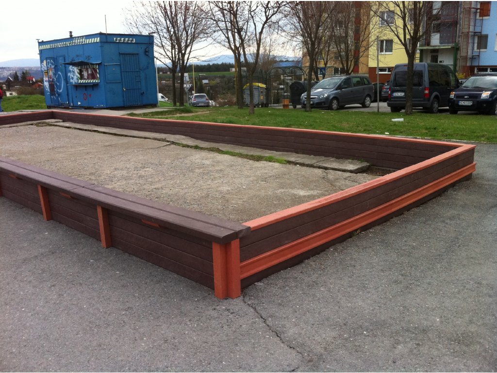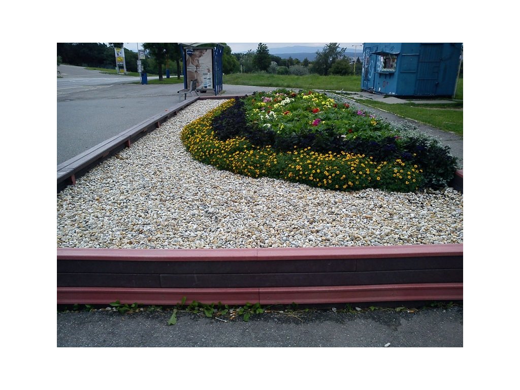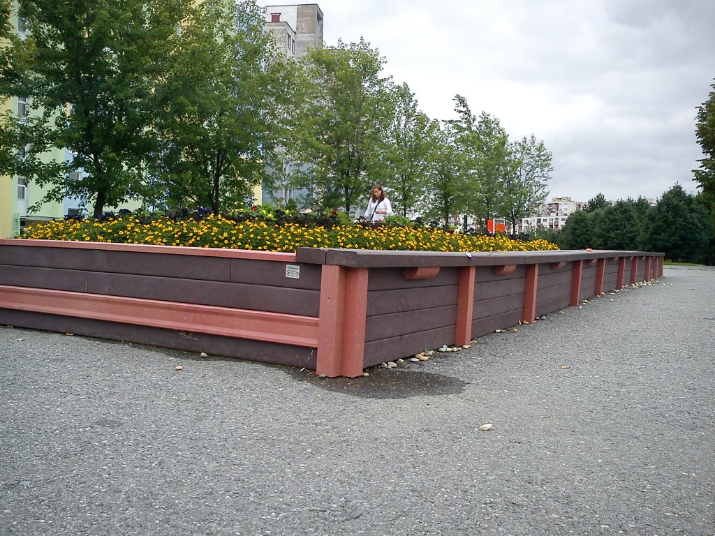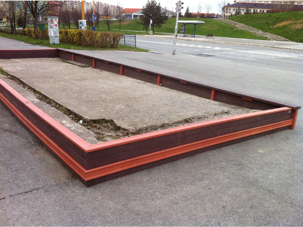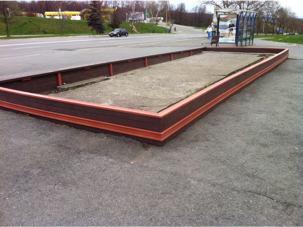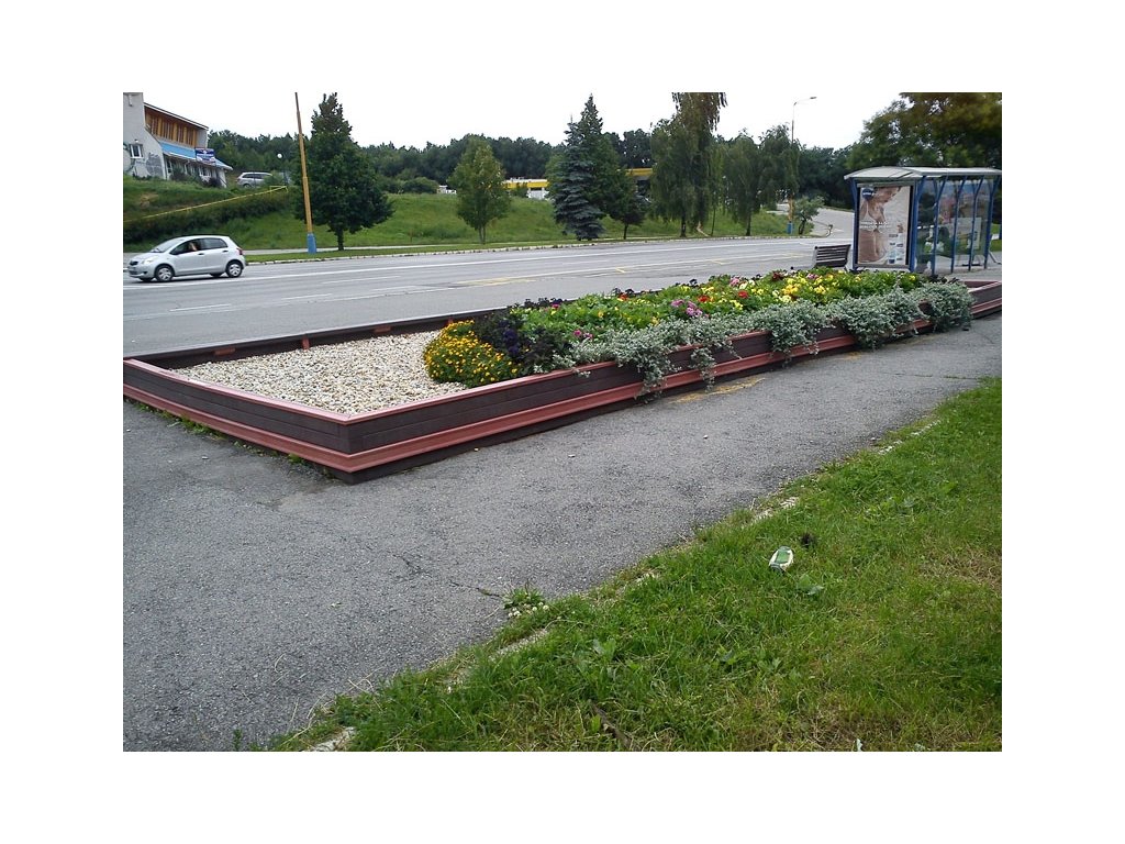 Rectangular flower pot, dimensions 10 x 4 m, height 30 cm. Different colour versions when using different profiles. With the possibility of sitting around the perimeter for an additional fee.