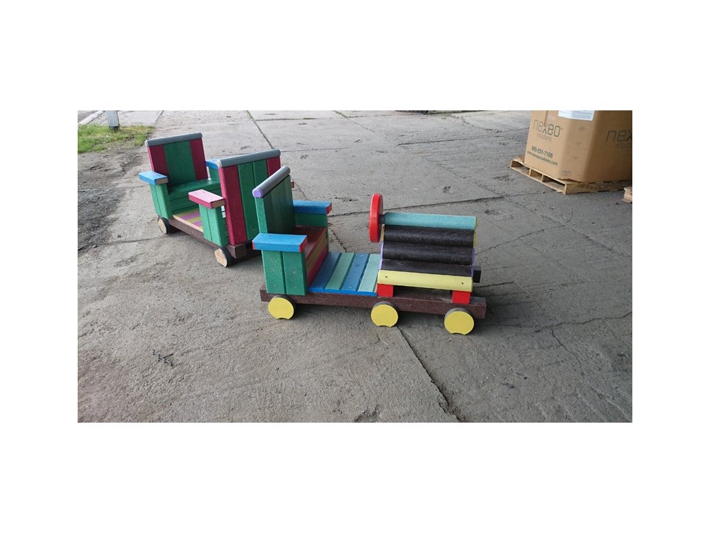 The children's train is a suitable addition to schoolyards. We can manufacture locomotives and wagons individually according to the customer's request. There are many options for making a completely new train with a locomotive and carriages, or cheaper girders that are suitable for seating. Reconstruction - or the exchange of an old wooden train for new wooden or plastic boards is also in our production program. Photo documentation is proof of our work..