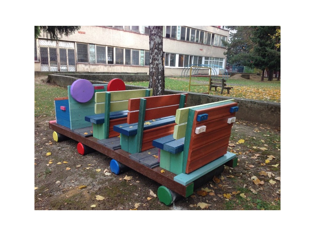 The children's train is a suitable addition to schoolyards. We can manufacture locomotives and wagons individually according to the customer's request. There are many options for making a completely new train with a locomotive and carriages, or cheaper girders that are suitable for seating. Reconstruction - or the exchange of an old wooden train for new wooden or plastic boards is also in our production program. Photo documentation is proof of our work.