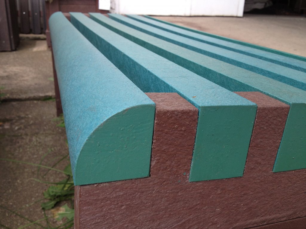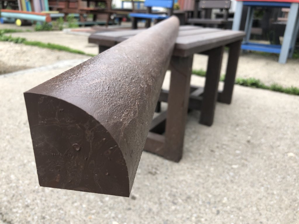 Plastic board with an arc-shaped shape. Suitable as a construction material for benches or children's elements.