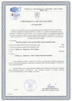 The certificate issued by VÚSAPL, Office for Standardization, Metrology and Testing, confirms the conformity of the product type with the technical requirements.