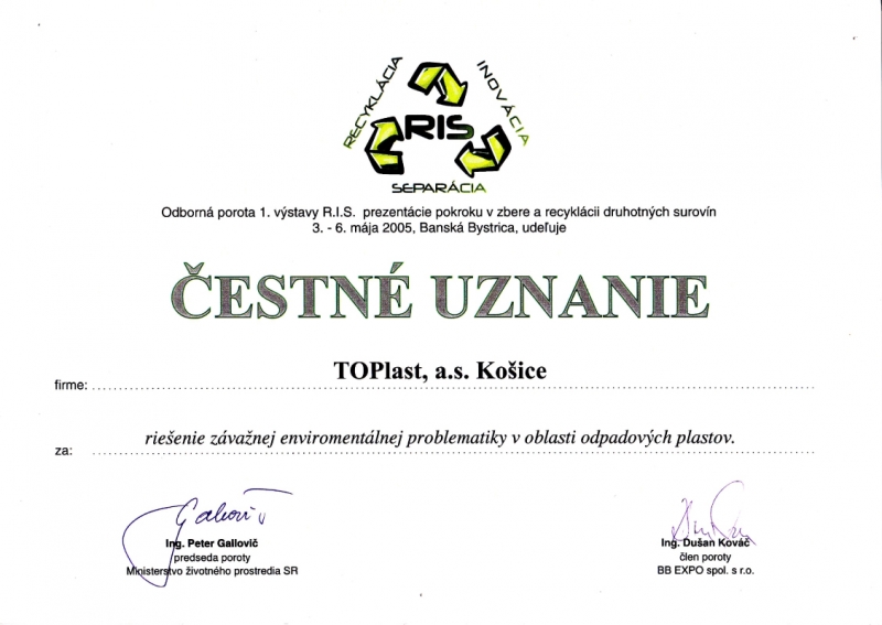 The findings from the students' excursions directly at our plant help to improve the plastics recycling sector and directly implement the outputs into practice. TOPlast, a.s. has arranged several lectures for kindergartens, primary schools, colleges to professional scientists dealing with ECO-EKO and environmental issues.