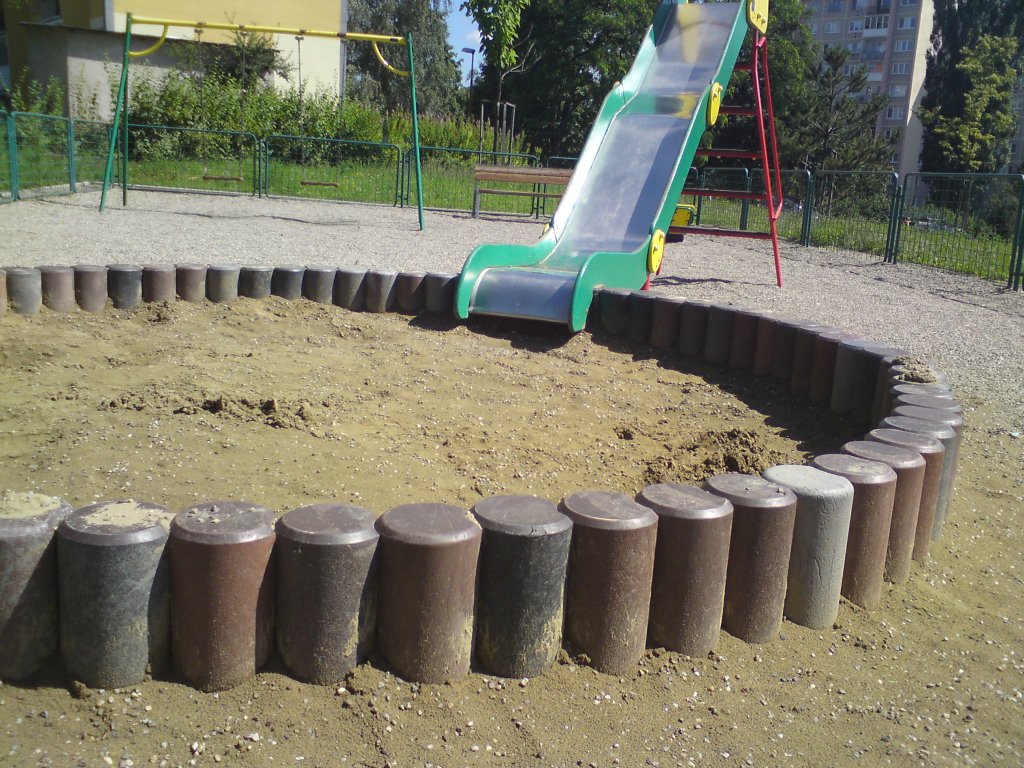 Plastic palisades are suitable matrial for bordering garden beds and playgrounds.