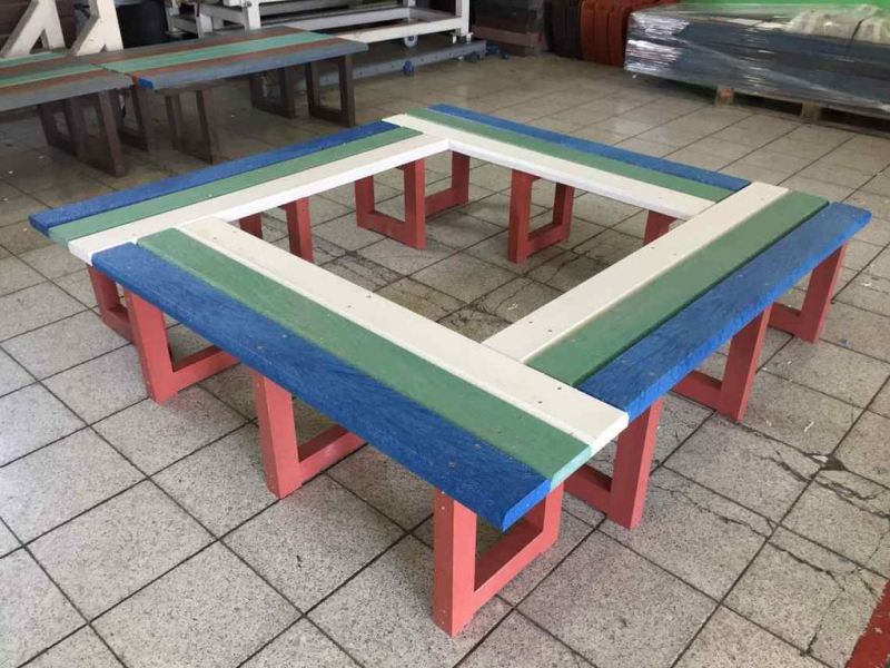 Sedenie okolo stromu pozostáva zo štyroch spojených lavičiek požadovaného rozmeru. Lavičky môžu byť doskové bez opierky, alebo aj s opierkou z rôznych našich profilov v rôznych farebných kombináciách.