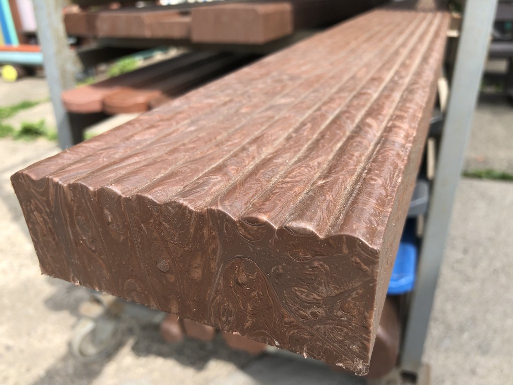 Moderný, protišmykový profil dosky má dĺžku až 220 cm a pri ukotvení hranolom H-70x50-2000 je možné vyroť podlahu s rozlohou 4,4m2 čo postačuje na osadenie dvoch lavičiek a stola. Materiál je plný, stálofarebný, bezúdržbový a odolný voči poveternostným vplyvom. Rozmerová tolerancia +- 3 % z celkovej dĺžky.
